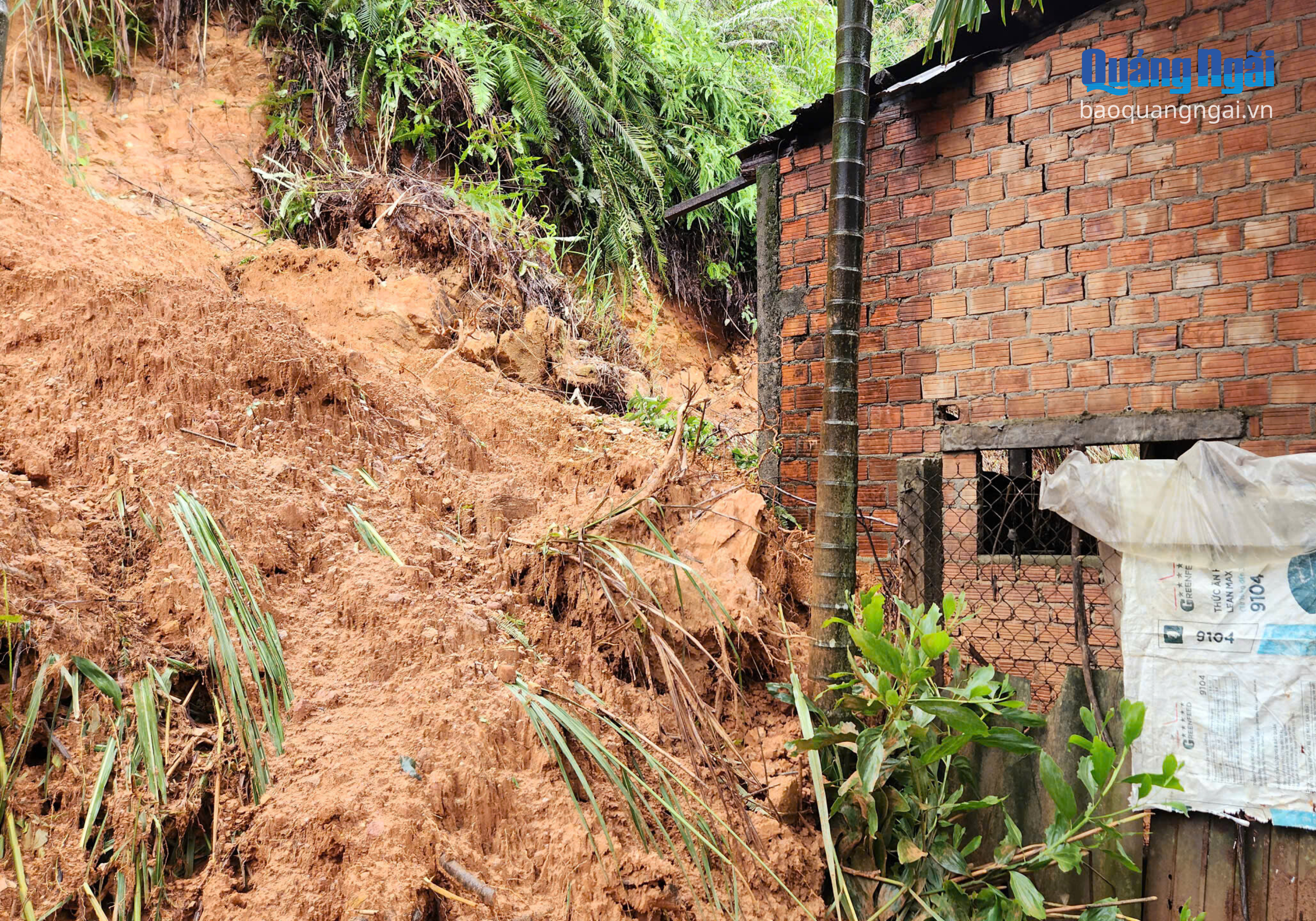 Bùn đất từ trên núi sạt xuống sát vách nhà một hộ dân.
