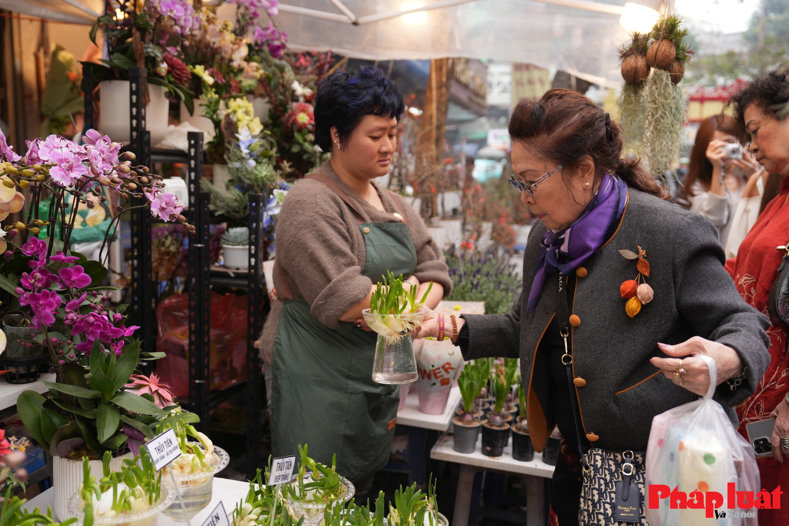 Người dân phố cổ lựa chọn hoa vào buổi sáng sớm hoặc buổi chiều, đây là khung giờ quen thuộc của chợ hoa Hàng Lược, khi lượng khách chưa đông và việc mua bán diễn ra nhanh gọn.