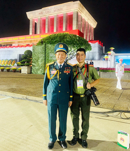 Trước và trong quá trình tác nghiệp, tôi may mắn được gặp gỡ và trò chuyện với nhiều người, từ các đại biểu cấp cao đến những người dân bình dị tham gia cổ vũ diễu binh, diễu hành. Trong số đó, khoảnh khắc gặp Trung tướng Phạm Tuân - Anh hùng lực lượng vũ trang nhân dân, phi công huyền thoại, người châu Á đầu tiên bay vào vũ trụ đã để lại trong tôi một ấn tượng sâu sắc.