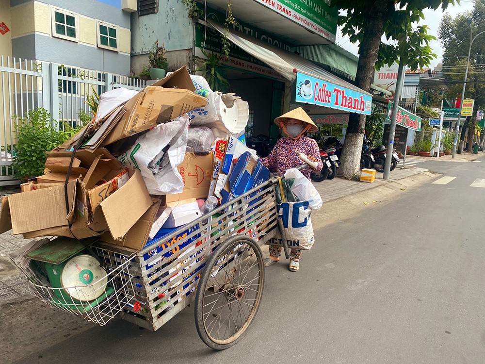 Nghề đồng nát không “sang” song đó là “cần câu cơm” mưu sinh hằng ngày của cả gia đình, vì thế, chẳng mấy khi Dì ở nhà, bởi quanh năm suốt tháng gắn bó với chiếc xe đạp rong ruổi khắp khắp phố phường Rạch Giá mua sắt, thép vụn, chai lọ nhựa, bao bì ni lông, vỏ lon bia, đồng nhôm, giấy vụn,… rồi đem bán lại cho đại lí thu mua phế liệu trên đường Bà Triệu. Mỗi vòng xe là một sự háo hức, mỗi tiếng rao là một sự nhẫn nại, mong chờ. Nhiều khi Dì phải đi sớm kẻo người khác mua hết. Mỗi ki-lô-gam chỉ lãi vài trăm đến vài nghìn đồng, buổi nhiều bù buổi ít, “năng nhặt, chặt bị” mỗi buổi cũng kiếm được vài chục đến vài trăm nghìn đồng. Vất vả, nhưng hầu như ngày nào đi về cũng có tiền đủ trang trải cuộc sống.