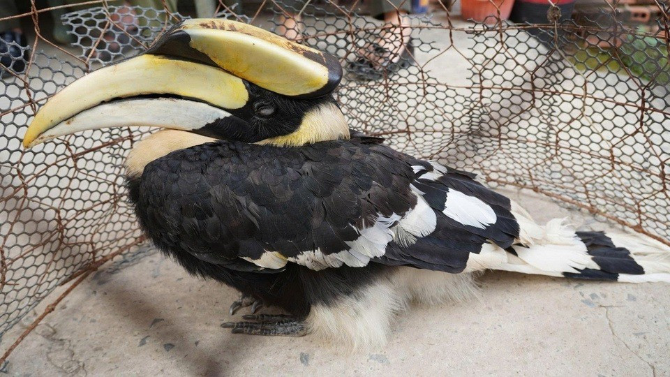 Vào thời điểm tiếp nhận, cá thể chim hồng hoàng trong tình trạng khỏe mạnh. Sau khi hoàn tất các thủ tục cần thiết, Chi cục Kiểm lâm tỉnh Tây Ninh đã phối hợp bàn giao cá thể chim hồng hoàng cho Trại rắn Đồng Tâm để tiếp tục chăm sóc và bảo tồn. Ảnh: Angadachappa.