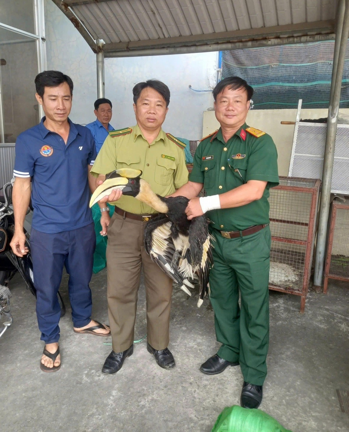 Sau đó, Công an xã Nhựt Tảo phối hợp lực lượng chức năng tiếp nhận và bàn giao cá thể chim hồng hoàng quý hiếm cho Đội Kiểm lâm cơ động và phòng cháy chữa cháy rừng số 2, thuộc Chi cục Kiểm lâm tỉnh Tây Ninh để chăm sóc, quản lý. Ảnh: Lam Jiang.