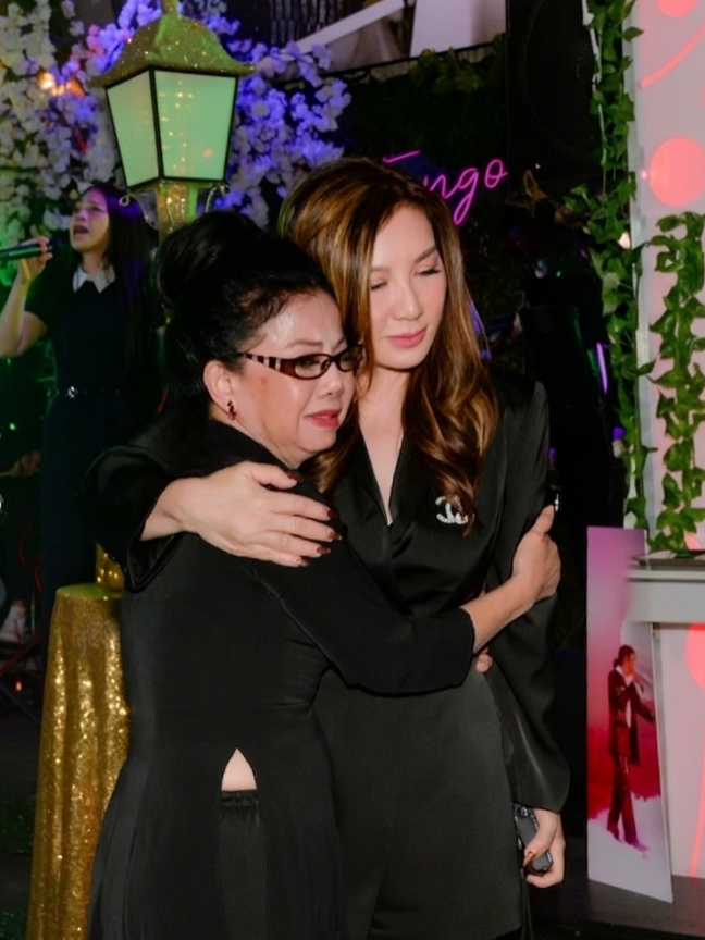 Nghệ sĩ Thúy Nga chụp ảnh lưu niệm cùng mẹ của Kasim Hoàng Vũ tại khu vực tưởng niệm.