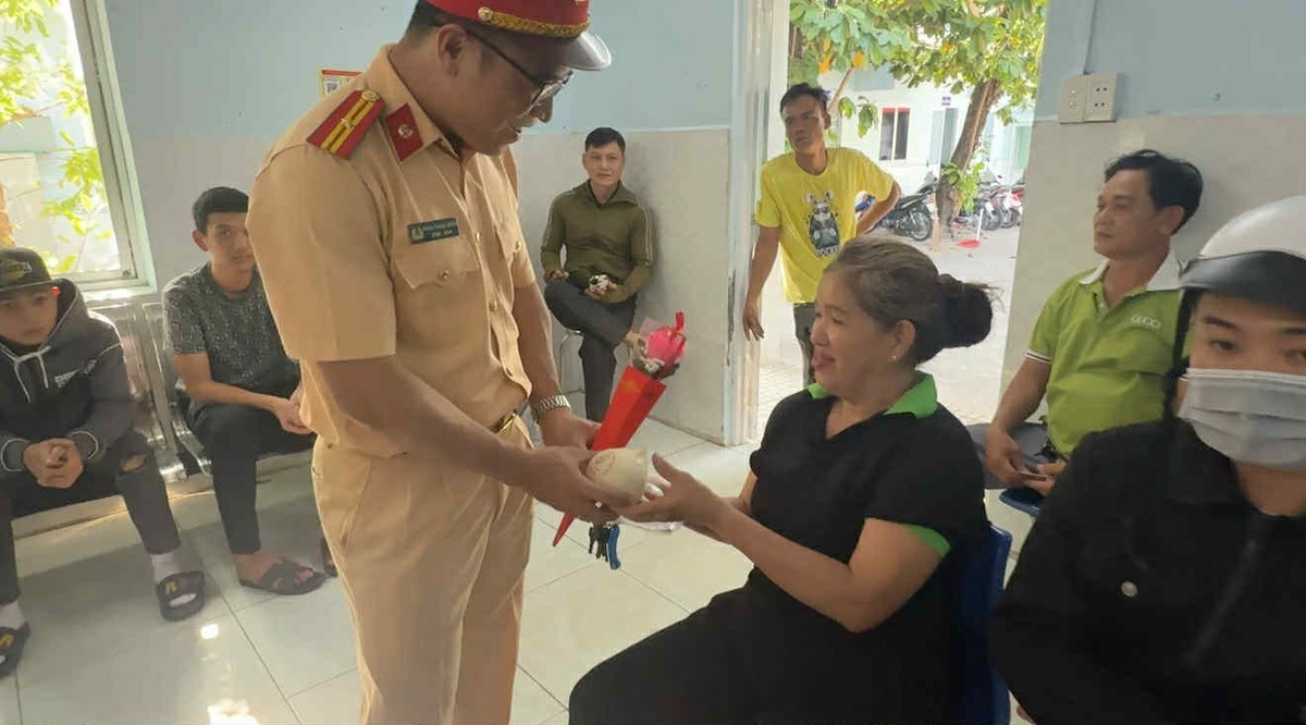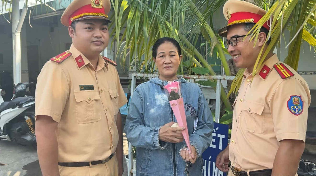 “Sáng lo chở con đi học, lại đến ngày theo lịch hẹn đóng phạt khiến tôi không nhớ ngày hôm nay là ngày của phụ nữ Việt Nam. Bất ngờ được các CSGT bày tỏ sự trân trọng phụ nữ, tặng món quà tuy nhỏ nhưng rất ý nghĩa khiến tôi xúc động và thấy vui trong lòng”, chị Tâm chia sẻ.