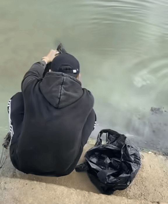 (Video ghi lại khoảnh khắc "dở khóc dở cười" của nam thanh niên trong lúc đi phóng sinh cá. Nguồn: Hóng Đường Phố)