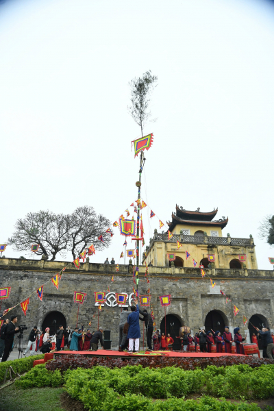 Cây nêu ngày Tết tại Di sản Hoàng thành Thăng Long - Hà Nội.
