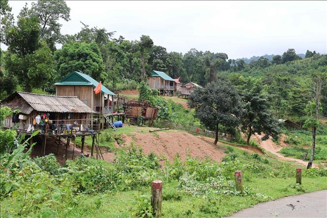 Khung cảnh bản làng của đồng bào thiểu số ở bản AKy, xã Thượng Trạch (tỉnh Quảng Trị), nơi người dân sống trong vùng đệm Vườn quốc gia Phong Nha - Kẻ Bàng. Ảnh: Kha Phạm/TTXVN