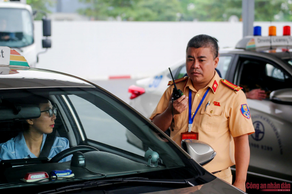 Cán bộ CSGT giám sát quá trình thi sát hạch tại Trung tâm GDNN và sát hạch lái xe Hà Thành