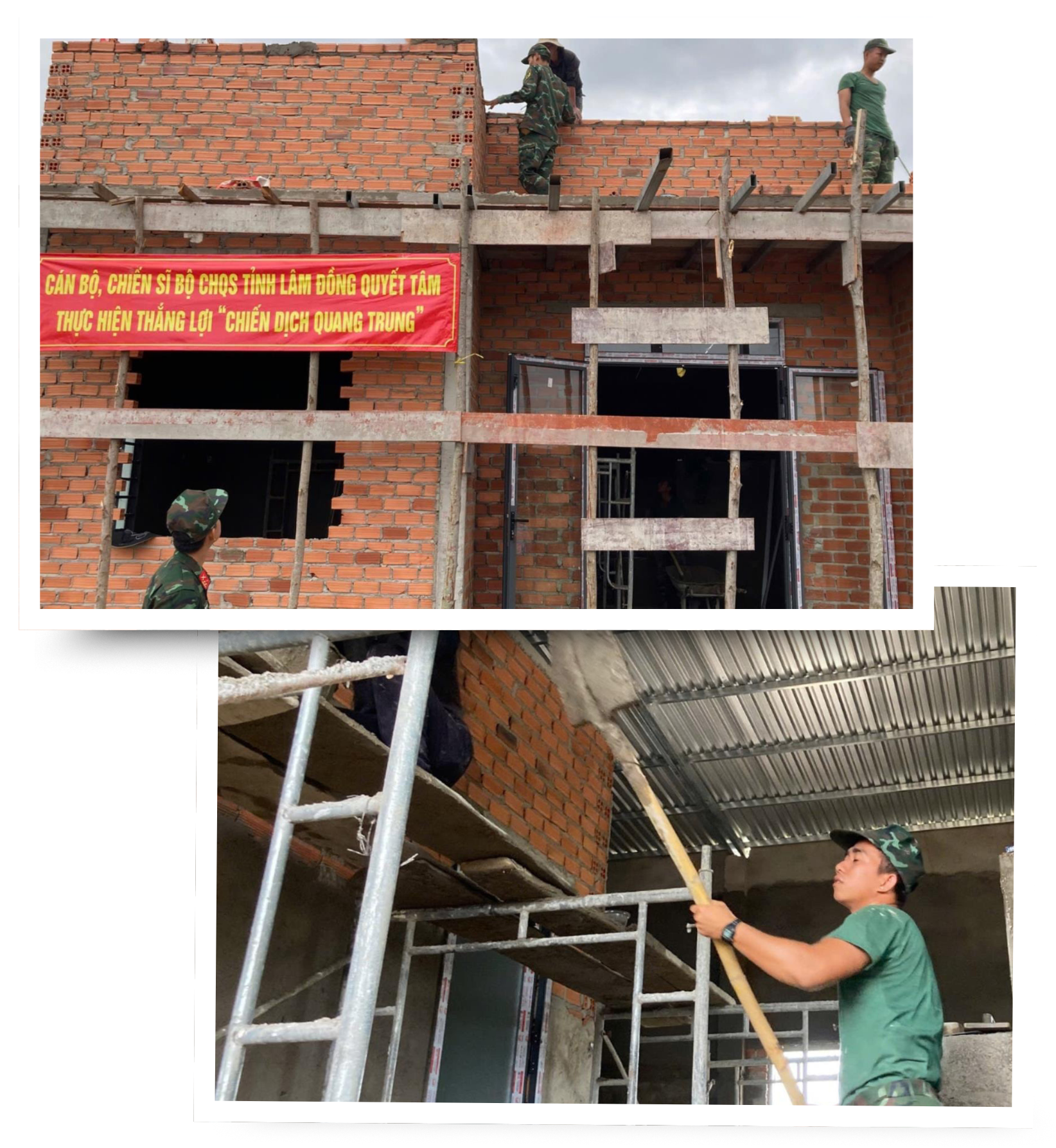 Thượng tá Hoàng Mạnh Dũng, Trung đoàn Bộ binh 812 (Bộ Chỉ huy Quân sự tỉnh Lâm Đồng) cho biết, cán bộ, chiến sĩ của đơn vị luôn nêu cao tinh thần trách nhiệm, thi công bảo đảm an toàn, chất lượng với mong muốn người dân sớm ổn định chỗ ở.