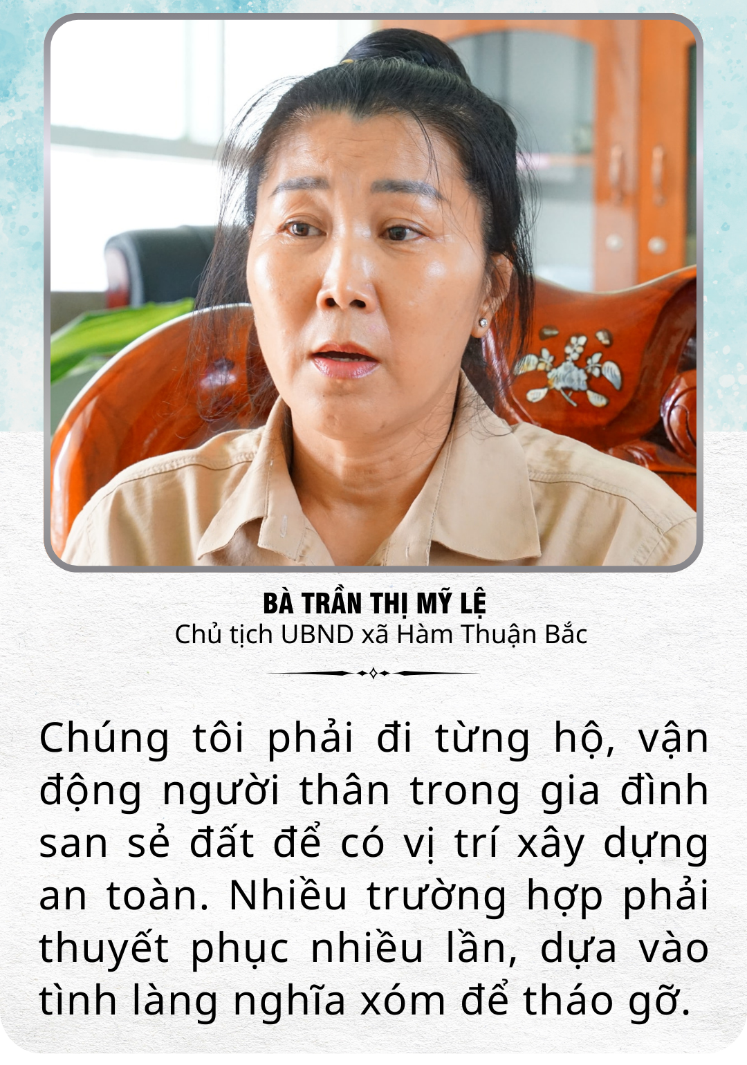 Khác với nhiều địa phương khác, cả 6 căn nhà tại Hàm Thuận Bắc đều không thể xây dựng lại trên nền đất cũ do nằm trong vùng trũng, nguy cơ tái ngập cao. Đây là bài toán khó ngay từ khi Chiến dịch bắt đầu.