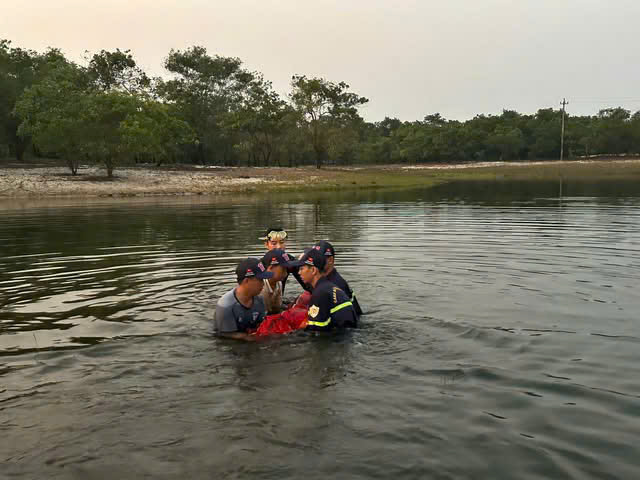Đến 17h32, Đội Chữa cháy và cứu nạn, cứu hộ khu vực số 4 nhận tin báo từ Trung tâm chỉ huy về PCCC và CNCH, điều động 2 xe chữa cháy cùng 9 cán bộ, chiến sĩ đến hiện trường tổ chức tìm kiếm.