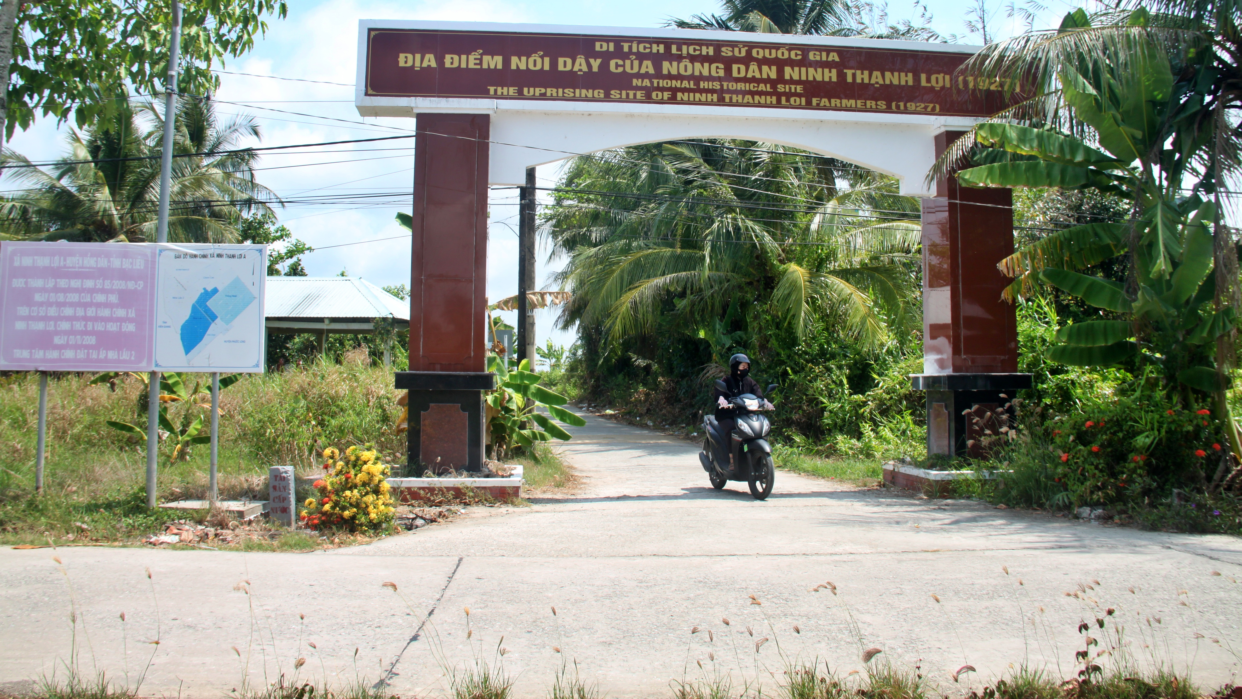 Cổng chào dẫn vào Di tích lịch sử Quốc gia Địa điểm nổi dậy của nông dân Ninh Thạnh Lợi (1927) ở xã Ninh Thạnh Lợi (tỉnh Cà Mau).