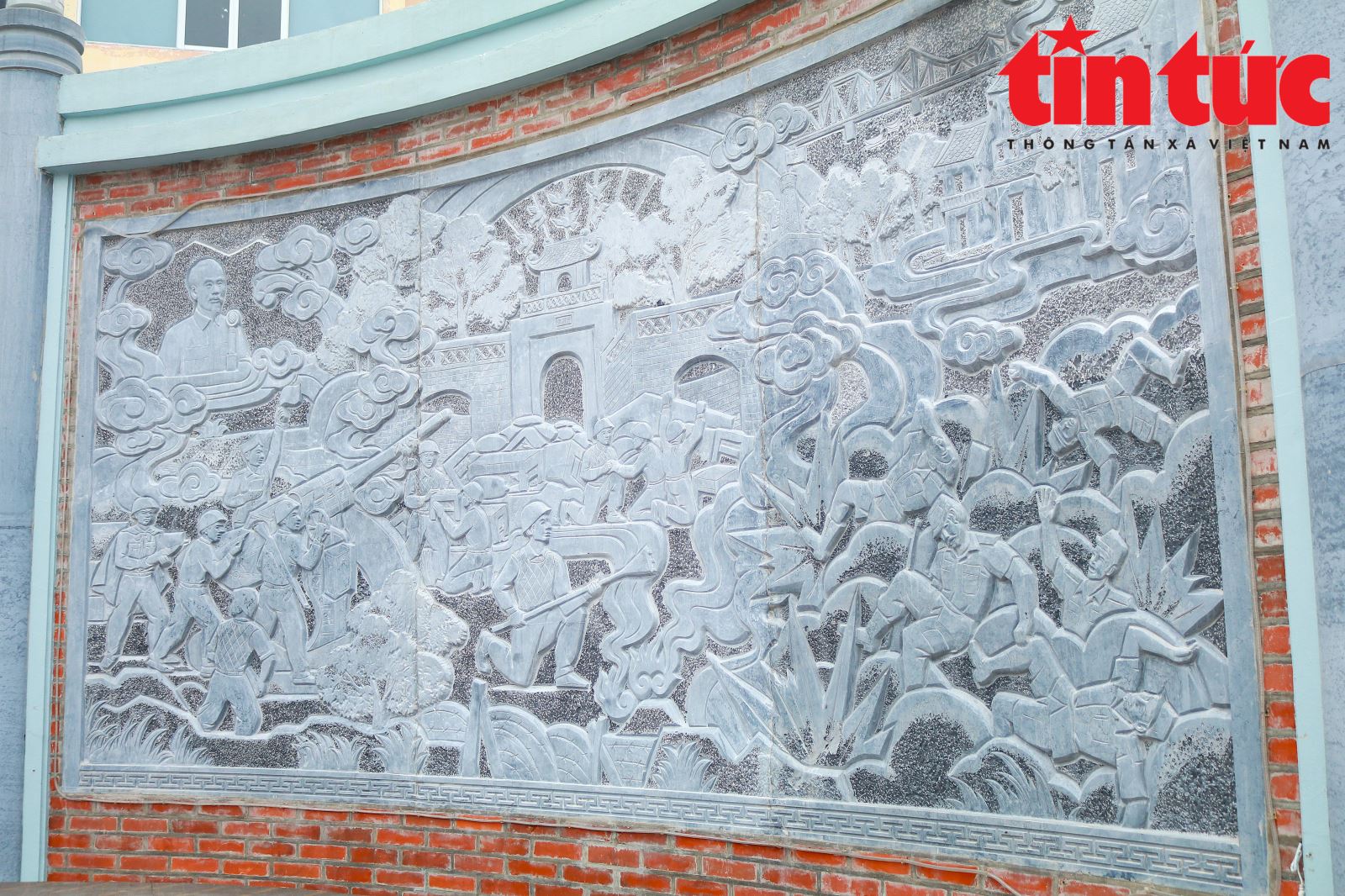 Bức phù điêu lớn khắc họa hình ảnh Bác Hồ kêu gọi toàn quốc kháng chiến, và những chiến sĩ Việt Nam anh hùng, bất khuất.