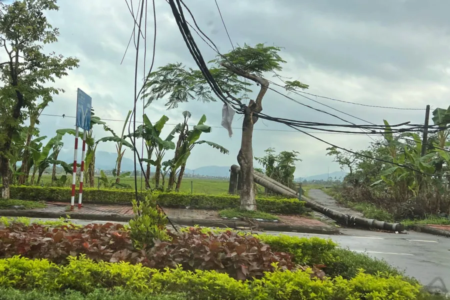 Người dân cho biết, sau bão số 10, nhiều cột điện trên địa bàn bị gãy đổ. Ngành điện lực, viễn thông đã khẩn trương khắc phục nhưng một số đoạn dây điện và dây cáp viễn thông vẫn được tạm treo lên cây chờ thay thế.