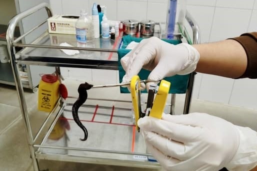 Qua thăm khám và nội soi, các bác sĩ chuyên khoa Tai - Mũi - Họng phát hiện một con đỉa còn sống đang ký sinh sâu trong hốc mũi người bệnh. Dị vật ngay sau đó được gắp ra an toàn, con đỉa có chiều dài khoảng 10 cm.