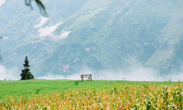 Khi đến đây, du khách sẽ choáng ngợp trước khung cảnh thiên nhiên ngoạn mục. Những thảm cỏ mượt mà, nương ngô, ruộng lúa bậc thang xen lẫn hàng sa mộc thẳng tắp tạo nên một bức tranh phong cảnh "tuyệt đối điện ảnh".