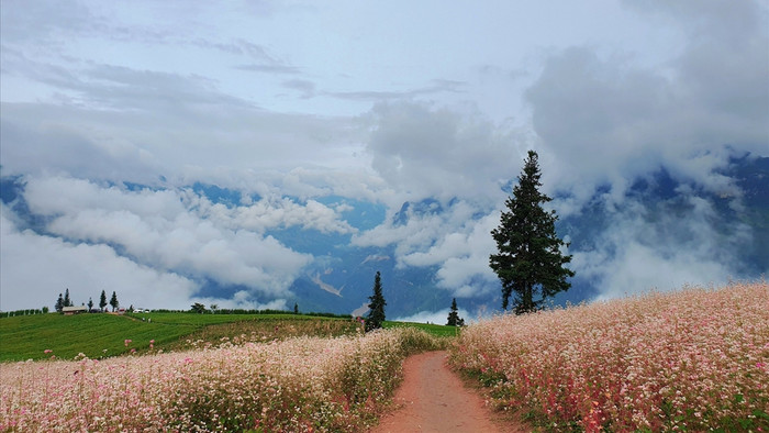 Đặc biệt, vào cuối thu, đầu đông (khoảng tháng 10, tháng 11), thảo nguyên khoác lên mình sắc hồng phai dịu dàng của hoa tam giác mạch – một "chiếc view triệu đô” khiến bất kỳ ai cũng phải say đắm. Buổi sớm mai, làn sương mờ ảo bao phủ càng tô điểm thêm vẻ huyền bí, lãng mạn, tựa như lạc vào chốn bồng lai tiên cảnh.