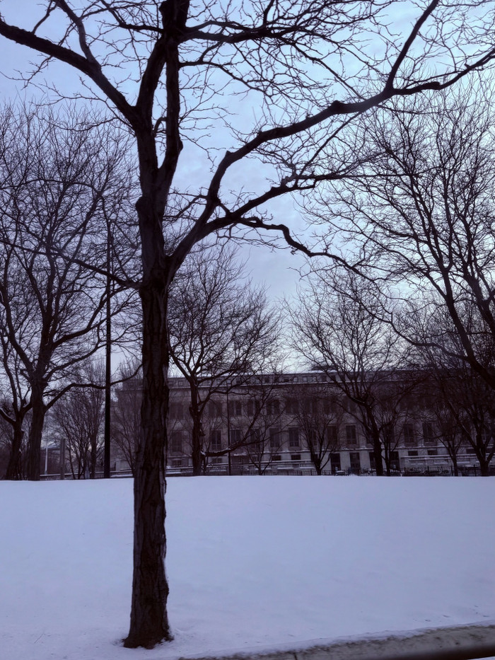 Những hàng cây bên đường chìm trong lớp tuyết trắng xóa.
