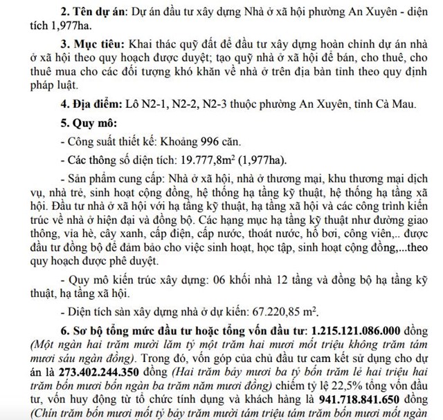 Làm chủ dự án nhà ở xã hội hơn 1.200 tỷ ở Cà Mau