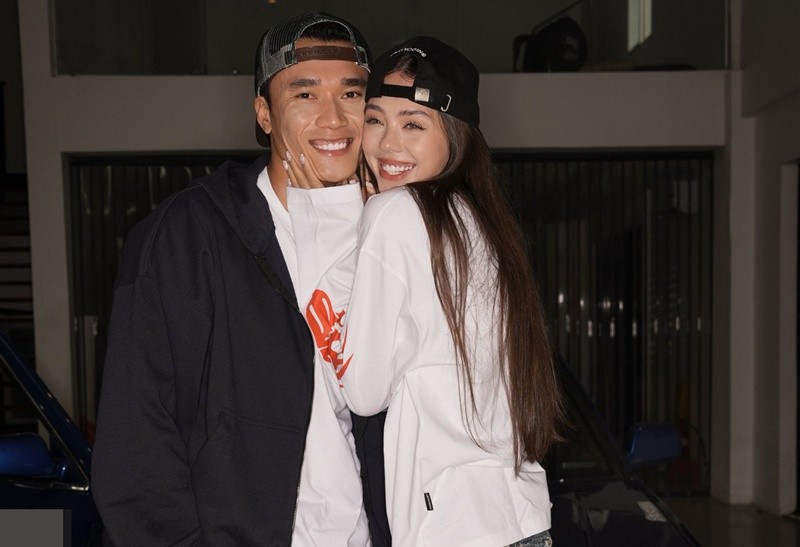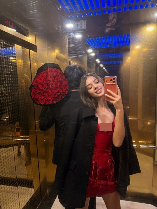 Vợ chồng nam thủ môn vẫn mặn nồng như thuở mới hẹn hò. Dịp Valentine 2026, cả hai thoải mái chụp ảnh selfie tình tứ trong thang máy. Ảnh: FB Bùi Tiến Dũng.