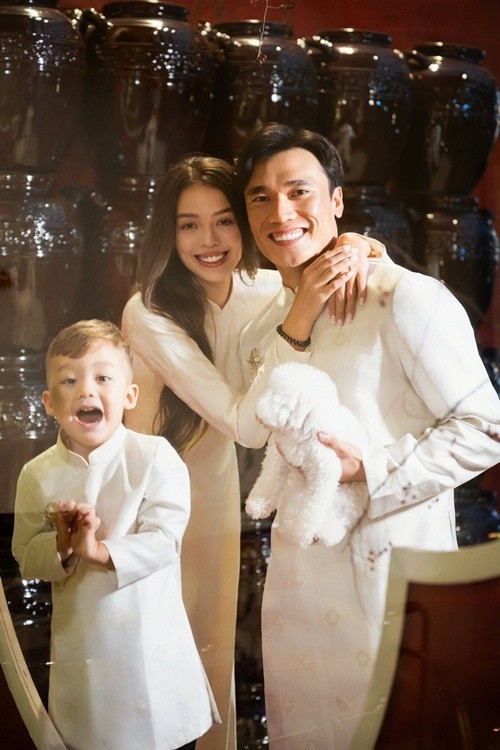 Dianka đã có 4 năm làm dâu Việt. Dịp Tết vừa qua, cô cùng chồng và con diện áo dài truyền thống. Ảnh: FB Bùi Tiến Dũng.