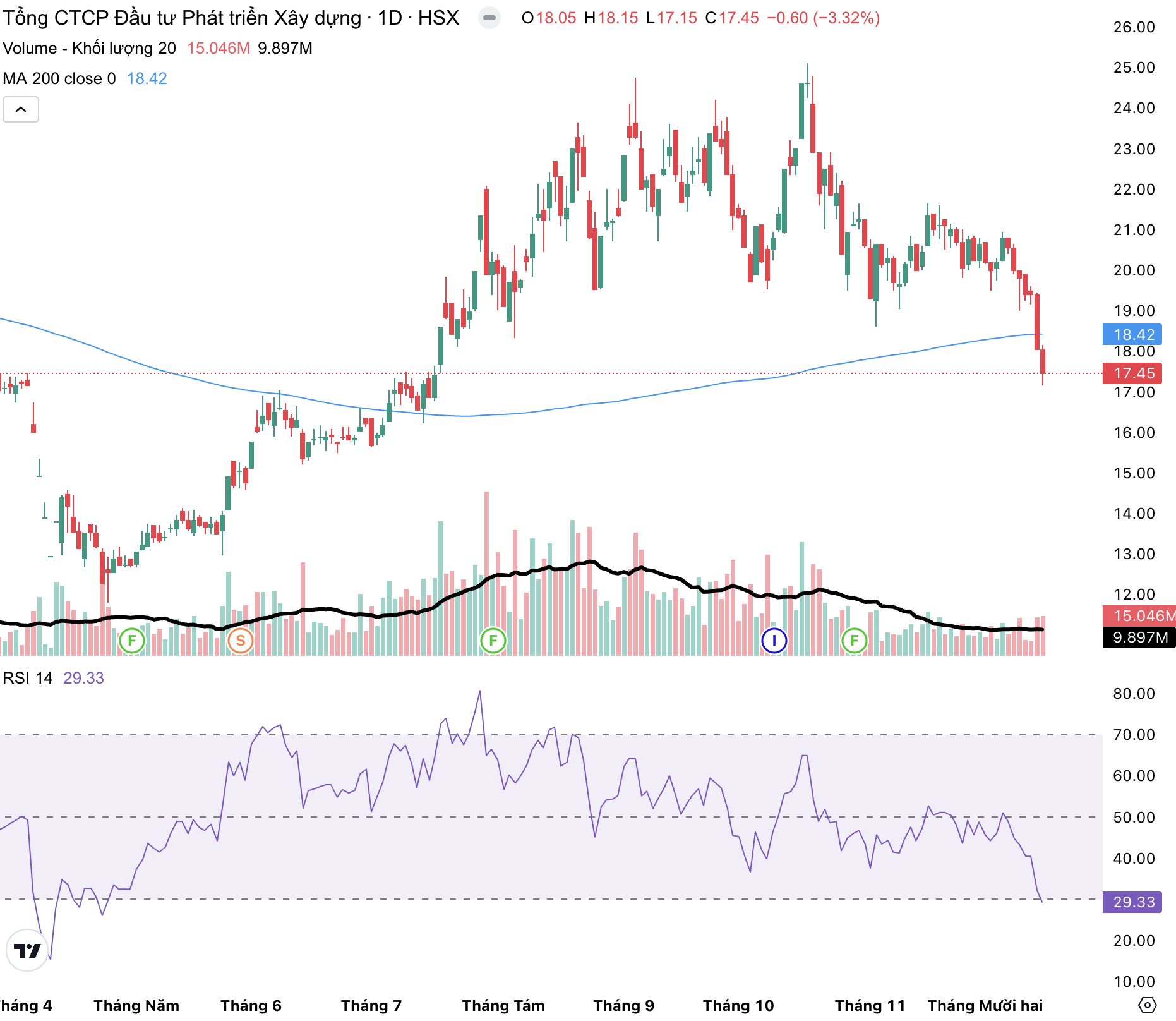 Về cổ phiếu, từ ngày 17/10 tới ngày 15/12, cổ phiếu DIG quay đầu giảm tới 29,1%, từ 24.600 đồng, về 17.450 đồng/cổ phiếu và chính thức bước vào kênh giảm giá dài hạn khi giao dịch dưới đường MA 200.