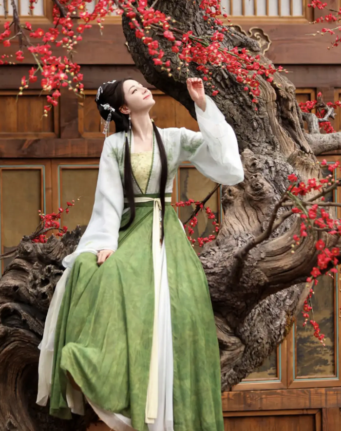 Xuất hiện trong bộ váy truyền thống Trung Quốc màu xanh nhạt, nữ diễn viên gây ấn tượng với vẻ ngoài thanh lịch, duyên dáng, vừa toát lên nét quyến rũ nhẹ nhàng, vừa giữ được sự dịu dàng đặc trưng của hình tượng cổ trang.