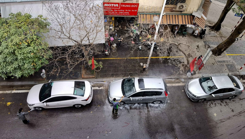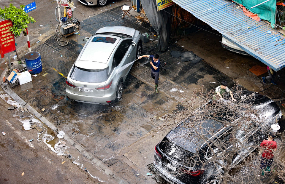 Dịch vụ rửa xe tất bật trong ngày 15/2/2026 (tức 28 tháng Chạp). (Ảnh: Thanh Tùng/TTXVN)