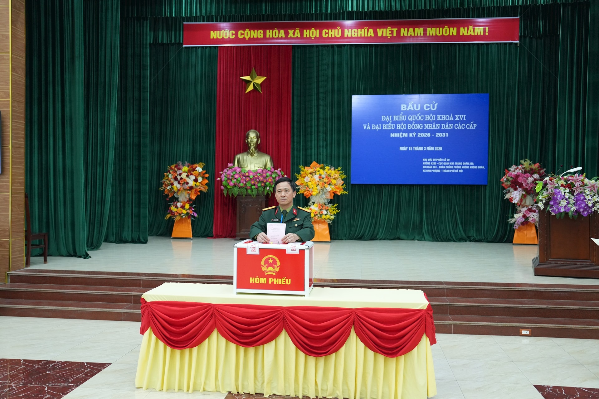 Trong sáng 15-3, khu vực bỏ phiếu số 30 hoàn thành 100% tỷ lệ cử tri đi bỏ phiếu. Ảnh: Thiên Tú