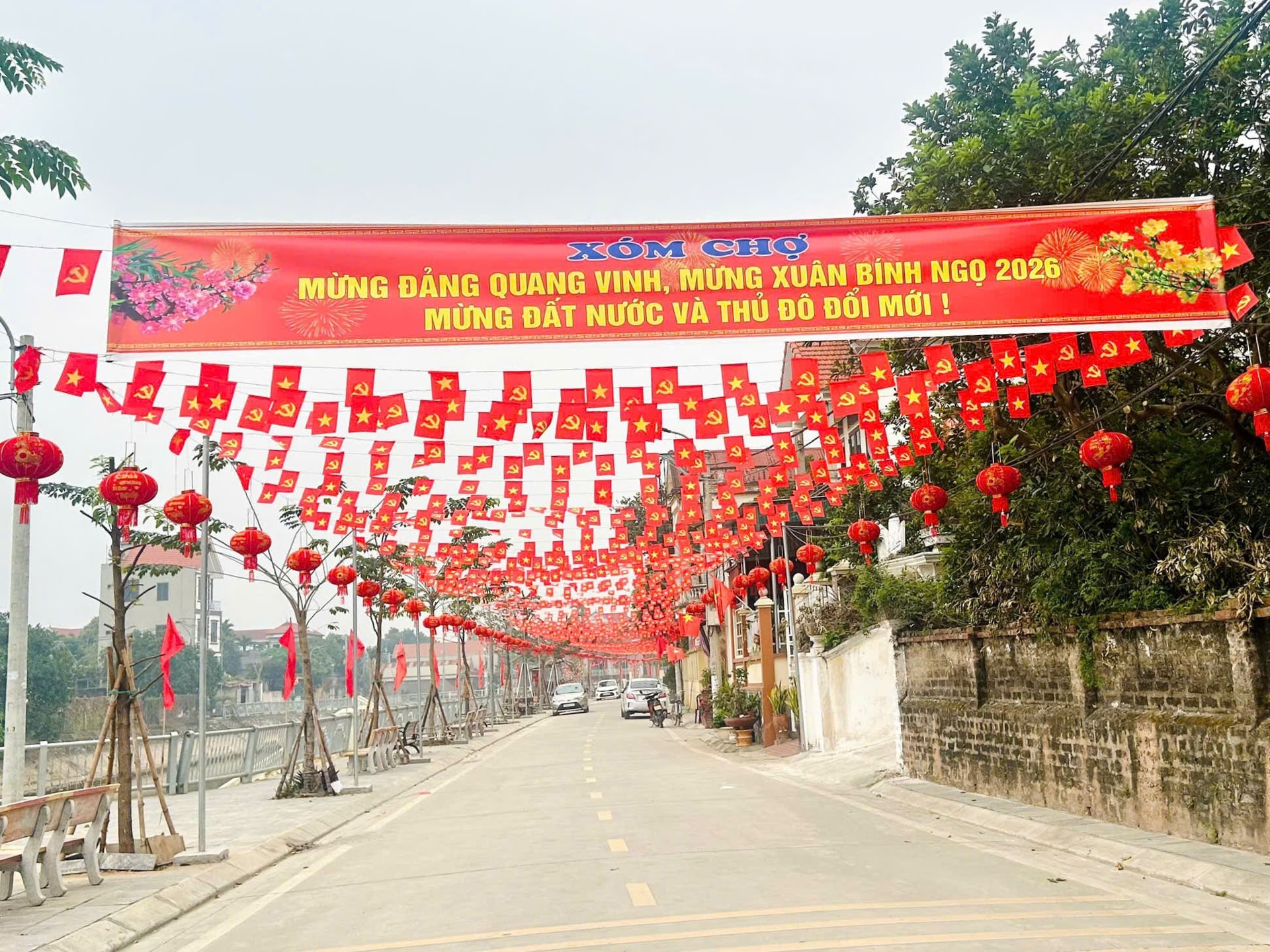Tại khuôn viên nhà văn hóa, đình - chùa ở các thôn, nhiều điểm “check-in” xuân được đầu tư trang trí sáng tạo, mang đậm bản sắc truyền thống. Những tiểu cảnh quen thuộc như cổng làng ngày Tết, bánh chưng xanh, hoa đào, hoa mai, nón lá, xe đạp, đèn lồng, câu đối đỏ… được sắp đặt hài hòa, trở thành không gian sinh hoạt cộng đồng hấp dẫn. Đây cũng là nơi thu hút đông đảo người dân, nhất là thanh thiếu niên và các gia đình tham quan, chụp ảnh lưu niệm trong những ngày đầu năm mới.