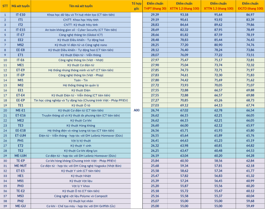 Điểm chuẩn trúng tuyển Đại học Bách Khoa Hà Nội năm 2025