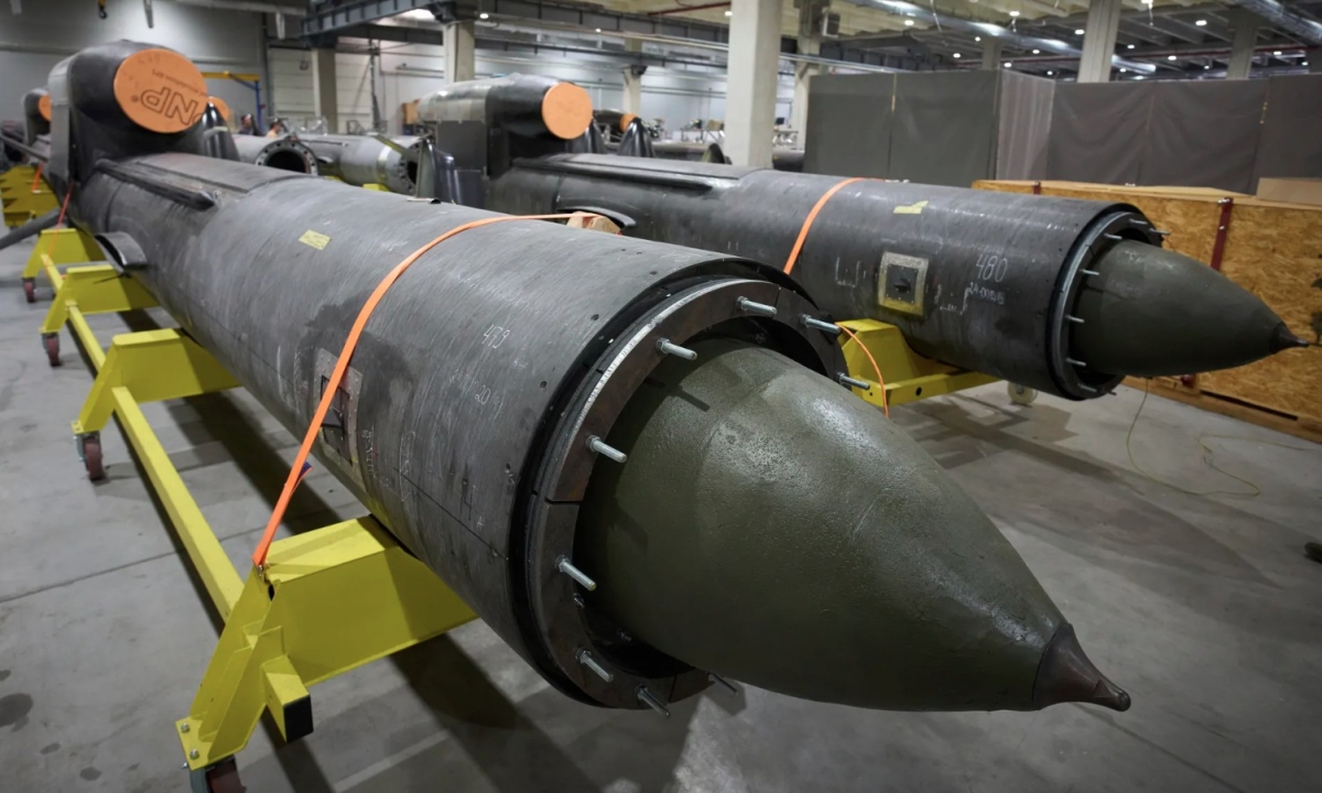 Các bộ phận của tên lửa Flamingo tại một nhà máy bí mật của công ty Fire Point ở Ukraine ngày 14/8/2025. Ảnh: AP