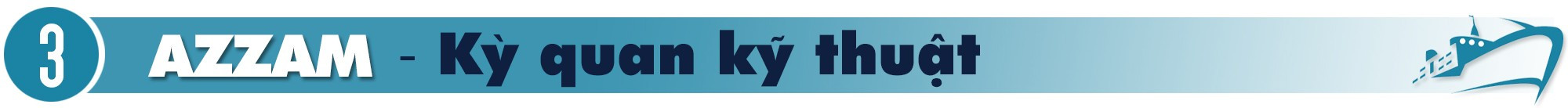 Thuộc sở hữu của Tiểu vương Abu Dhabi, Azzam không chỉ dài mà còn là một kỳ quan kỹ thuật. Du thuyền kết hợp tốc độ với sự thanh lịch, nội thất phô diễn sự sang trọng bậc nhất với chi phí ước tính khoảng hơn 600 triệu đô la.
