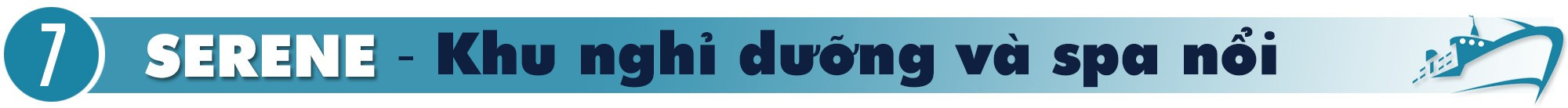 Du thuyền Serene nổi tiếng với những tiện nghi như spa, bao gồm phòng tuyết, phòng xông hơi và phòng ngắm cảnh dưới nước mang đến sự thư giãn và sang trọng không gì sánh bằng.