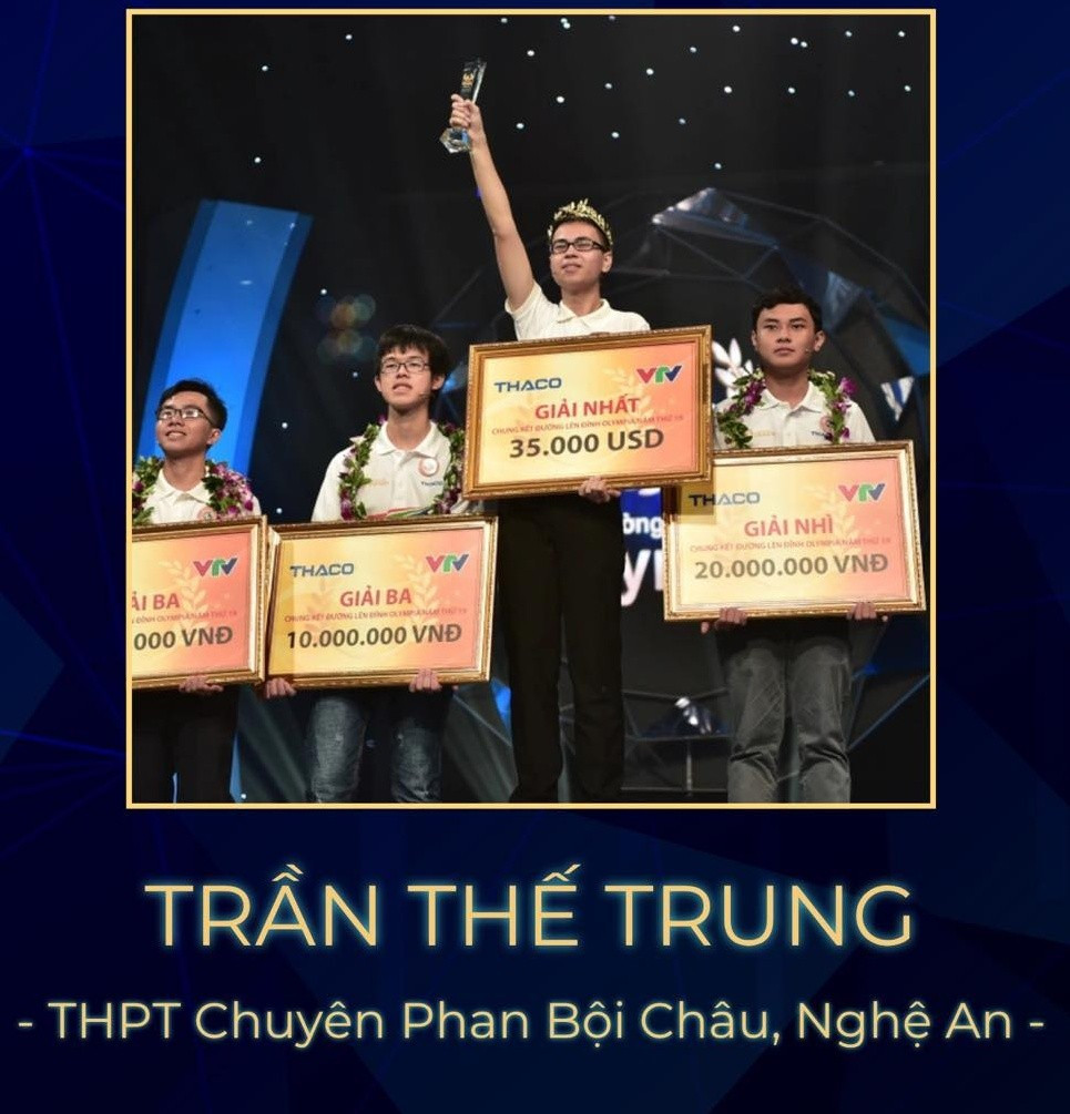Quán quân năm thứ 18, 19: Nguyễn Hoàng Cường - THPT Hòn Gai, Quảng Ninh và Trần Thế Trung - THPT Chuyên Phan Bội Châu, Nghệ An.