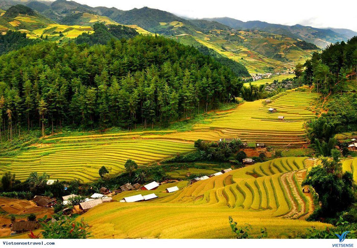 Nổi tiếng với những thửa ruộng bậc thang từng lọt top đẹp nhất thế giới, Mù Cang Chải là điểm đến không thể bỏ lỡ. Theo dự kiến, lúa ở đây thường chín rộ vào giữa tháng 9 và kéo dài khoảng hai tuần. Du khách có thể ghé thăm các điểm ngắm cảnh như đèo Khau Phạ, thung lũng Tú Lệ hay La Pán Tẩn để chiêm ngưỡng khung cảnh "trời vàng, đất vàng" hòa quyện với mây trời.