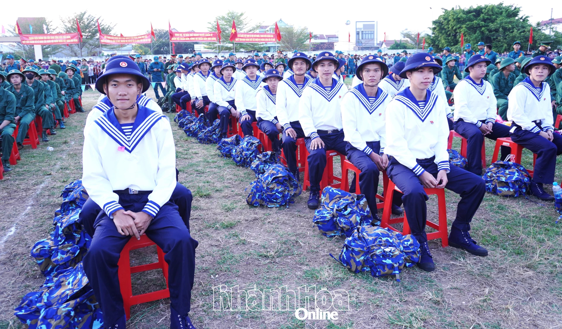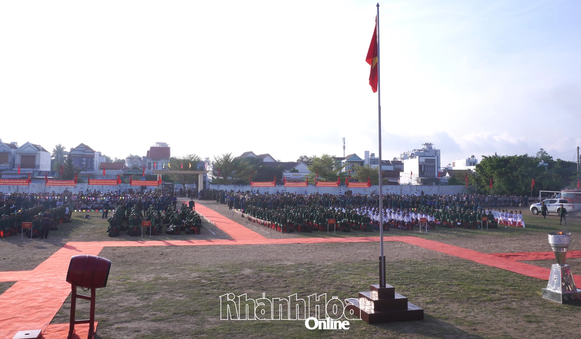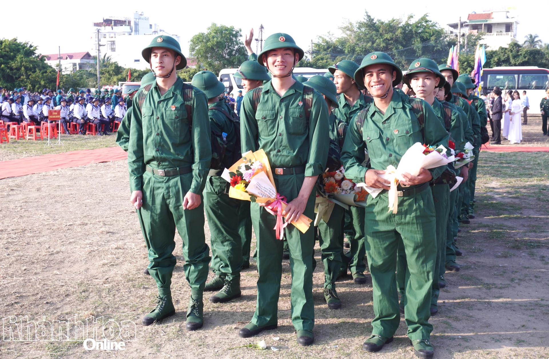 Quang cảnh tại lễ giao nhận quân ở Sân vận động 14-8, xã Vạn Ninh.