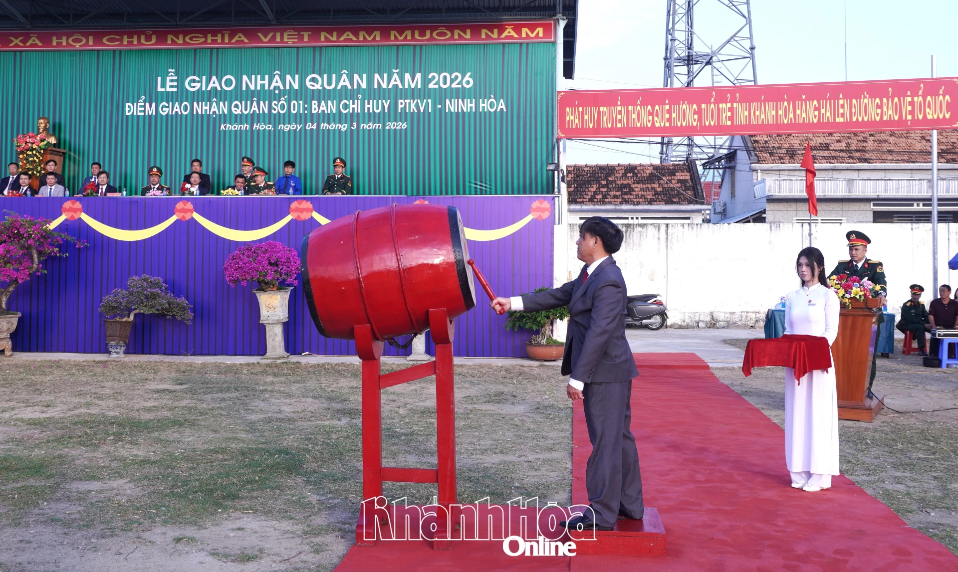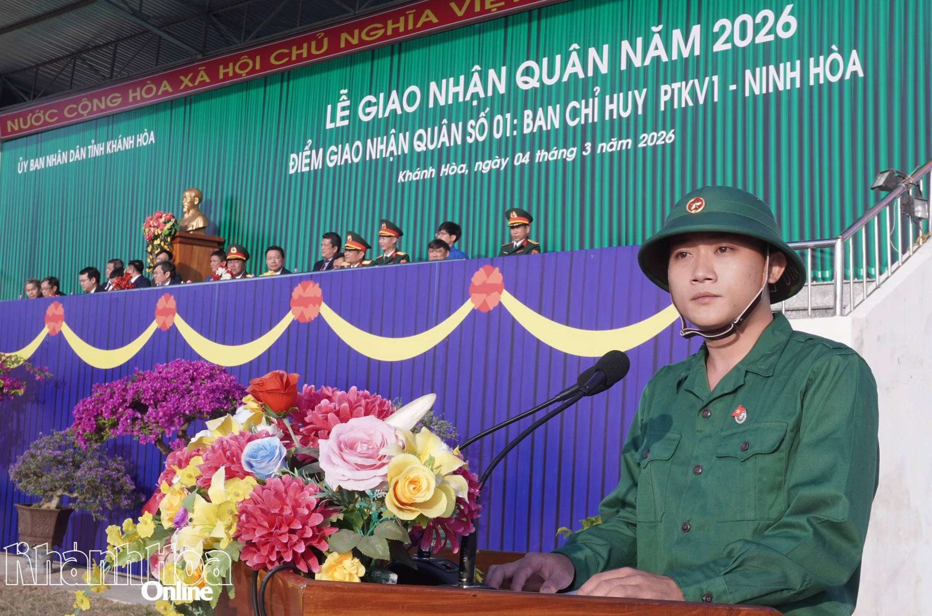 Sáng 4-3, tại Sân vận động 14-8, xã Vạn Ninh diễn ra lễ giao nhận quân năm 2026. Lãnh đạo Bộ Chỉ huy Quân sự tỉnh và các sở, ban, ngành, địa phương cùng đông đảo người dân đến động viên các thanh niên của 6 xã lên đường nhập ngũ, gồm: Bắc Ninh Hòa, Vạn Hưng, Vạn Ninh, Vạn Thắng, Tu Bông và Đại Lãnh.
