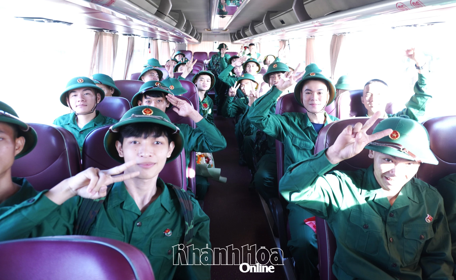 Các thanh niên phấn khởi trước giờ lên đường nhập ngũ.