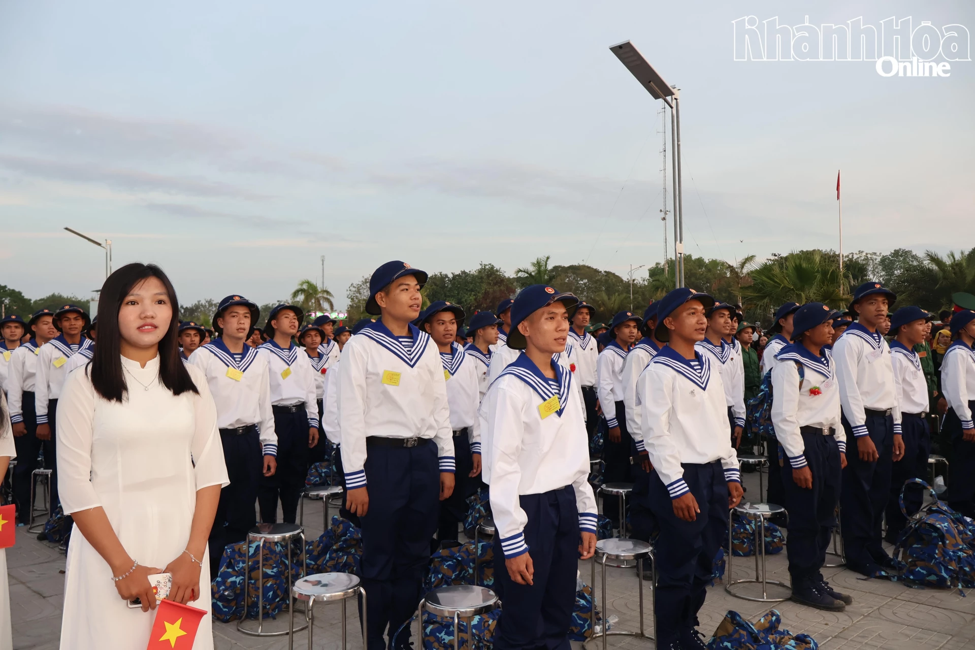 Các thanh niên trong buổi lễ giao nhận quân.