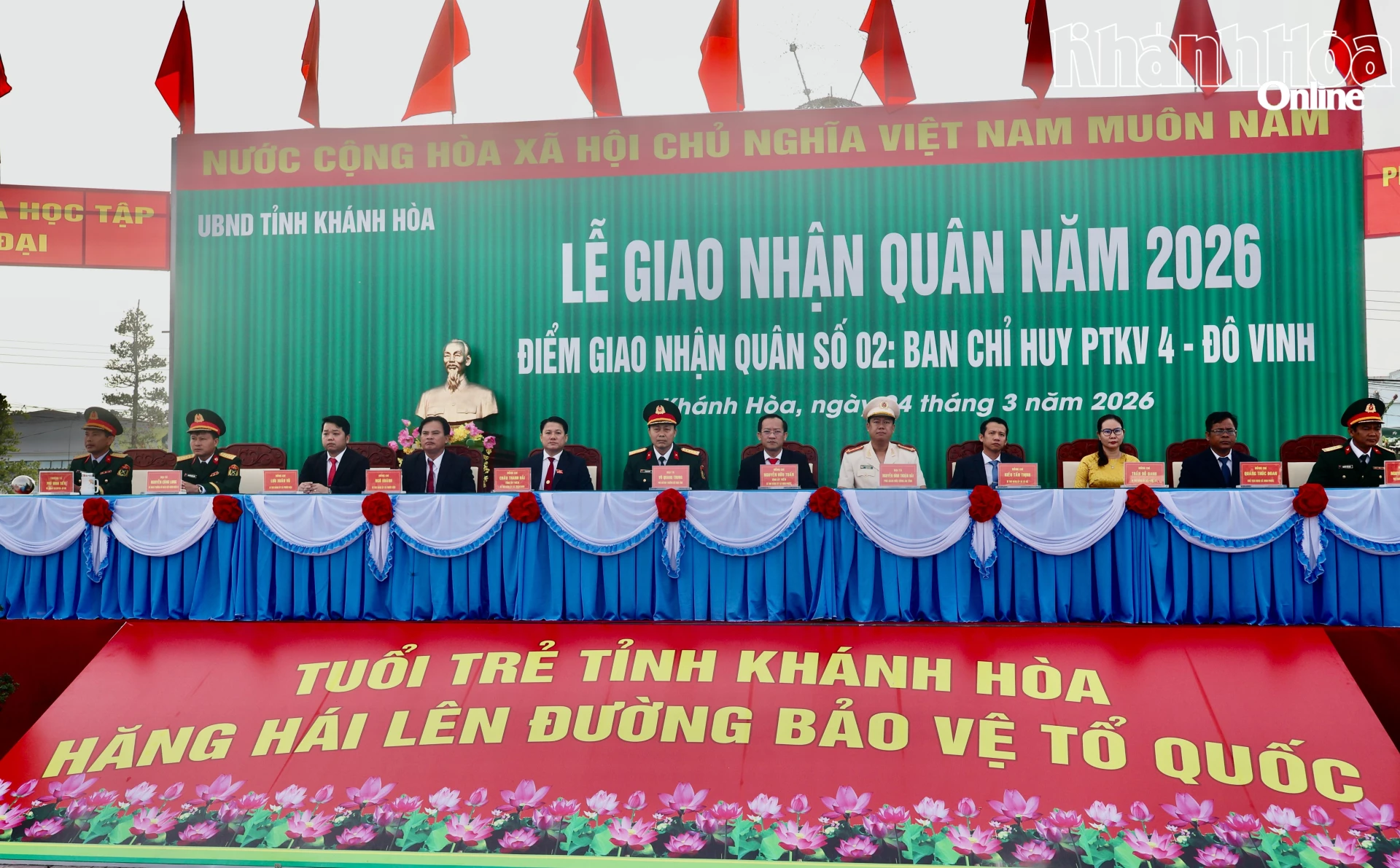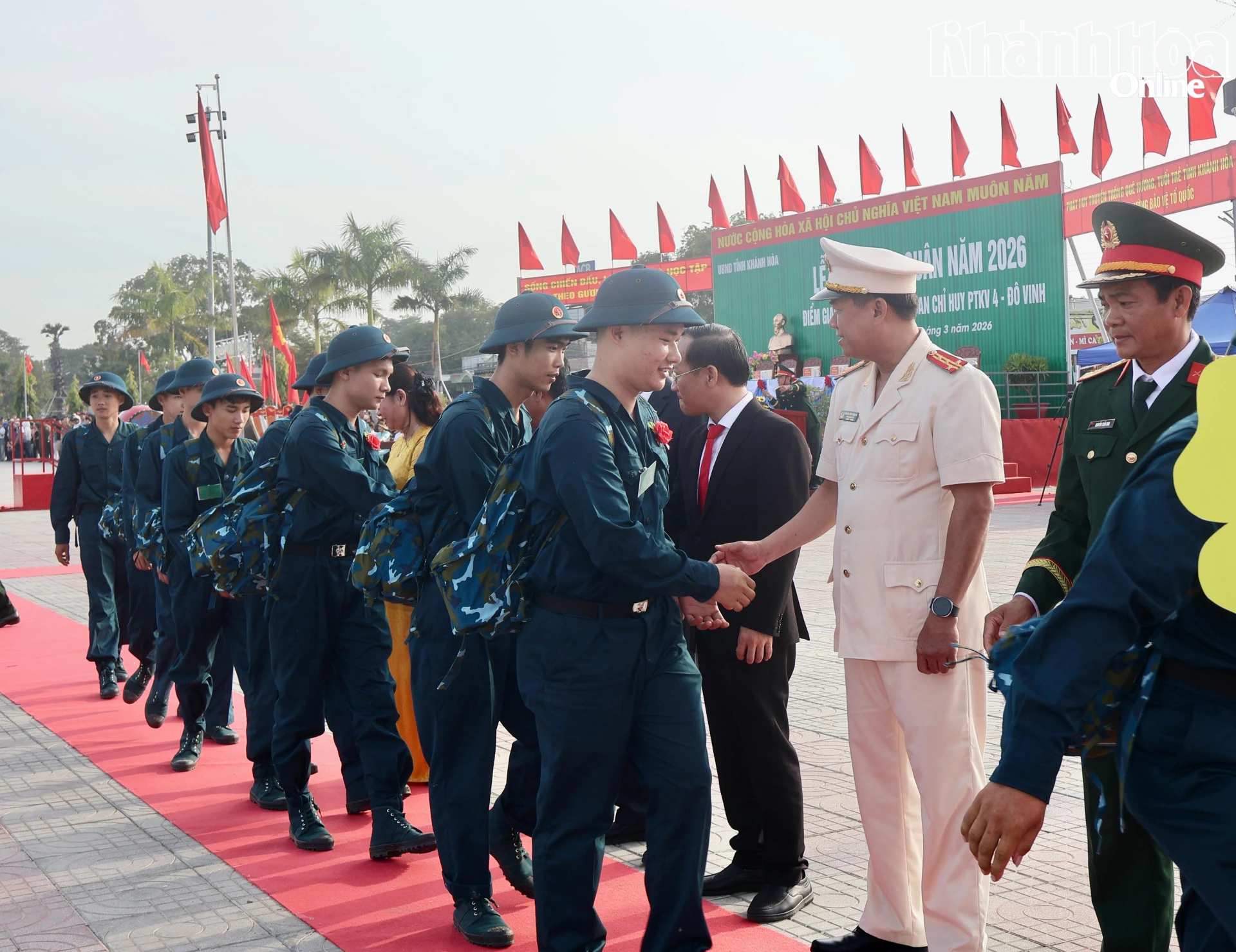 Sáng 4-3, tại Quảng trường trung tâm xã Ninh Phước (điểm giao nhận quân số 9), Ban Chỉ huy phòng thủ khu vực 4 - Đô Vinh tổ chức lễ giao nhận quân năm 2026. Đến dự và động viên các thanh niên lên đường nhập ngũ có Đại tá Võ Quang Trung - Phó Chỉ huy trưởng Bộ Chỉ huy Quân sự tỉnh; lãnh đạo các xã có thanh niên nhập ngũ, gồm: Cà Ná, Thuận Nam, Phước Hà, Phước Hữu, Phước Hậu, Ninh Phước; cùng đông đảo người thân các thanh niên.