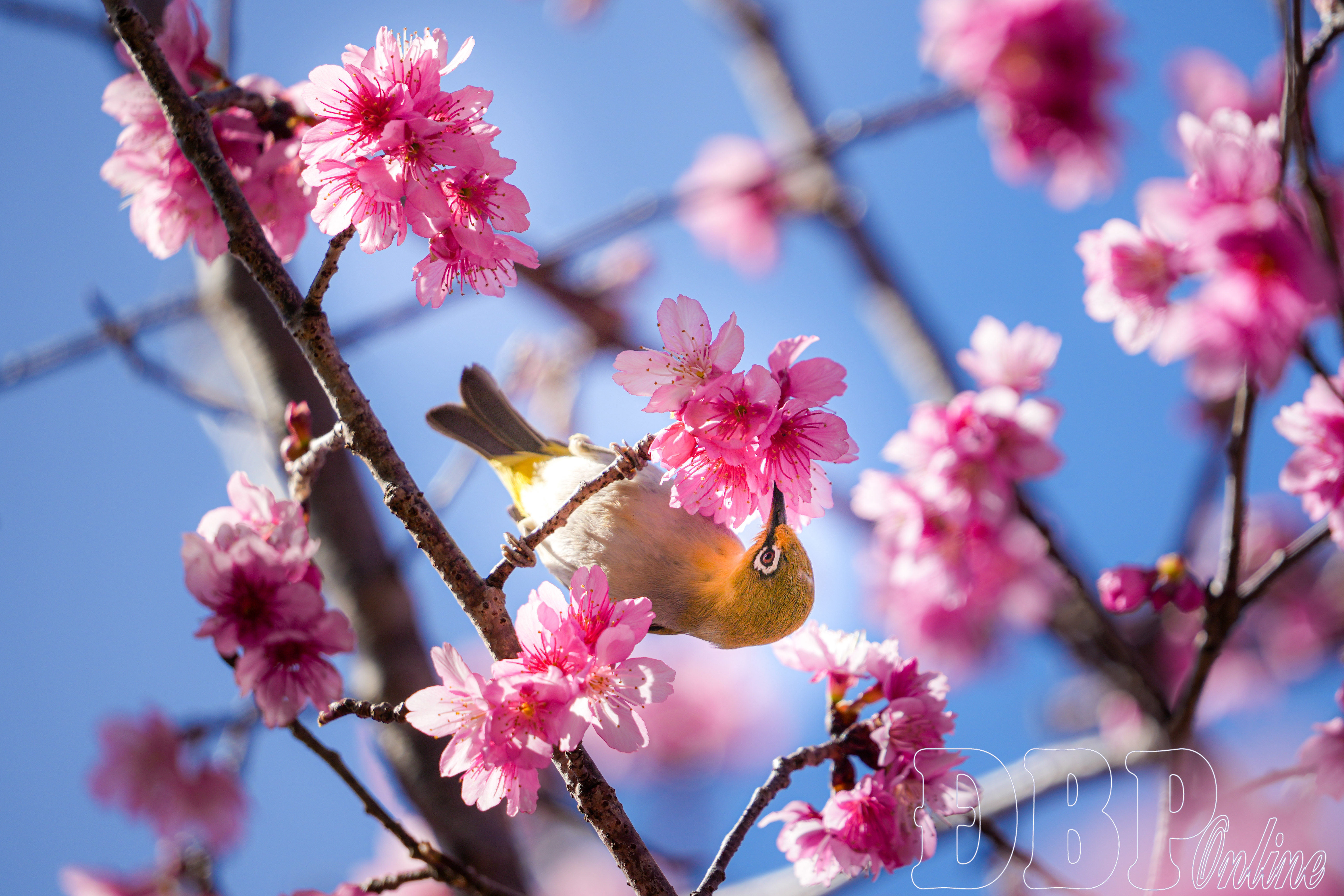 Một điểm nhấn đặc biệt của mùa hoa là sự xuất hiện của những đàn chim nhỏ, nhất là loài vành khuyên, tìm về hút mật khi hoa anh đào nở rộ. Đây là “đề tài sống” hấp dẫn đối với những người yêu nhiếp ảnh thiên nhiên. Để ghi lại khoảnh khắc chim sà xuống cành hoa, nhiều người sử dụng máy ảnh chuyên nghiệp kết hợp ống kính tele tiêu cự dài, lấy nét liên tục và tốc độ chụp cao nhằm bắt trọn chuyển động. Với sự phát triển của công nghệ, một số điện thoại thông minh có khả năng siêu zoom cũng mang lại những bức ảnh sinh động, giàu chi tiết, đáp ứng nhu cầu sáng tác của người chơi ảnh.