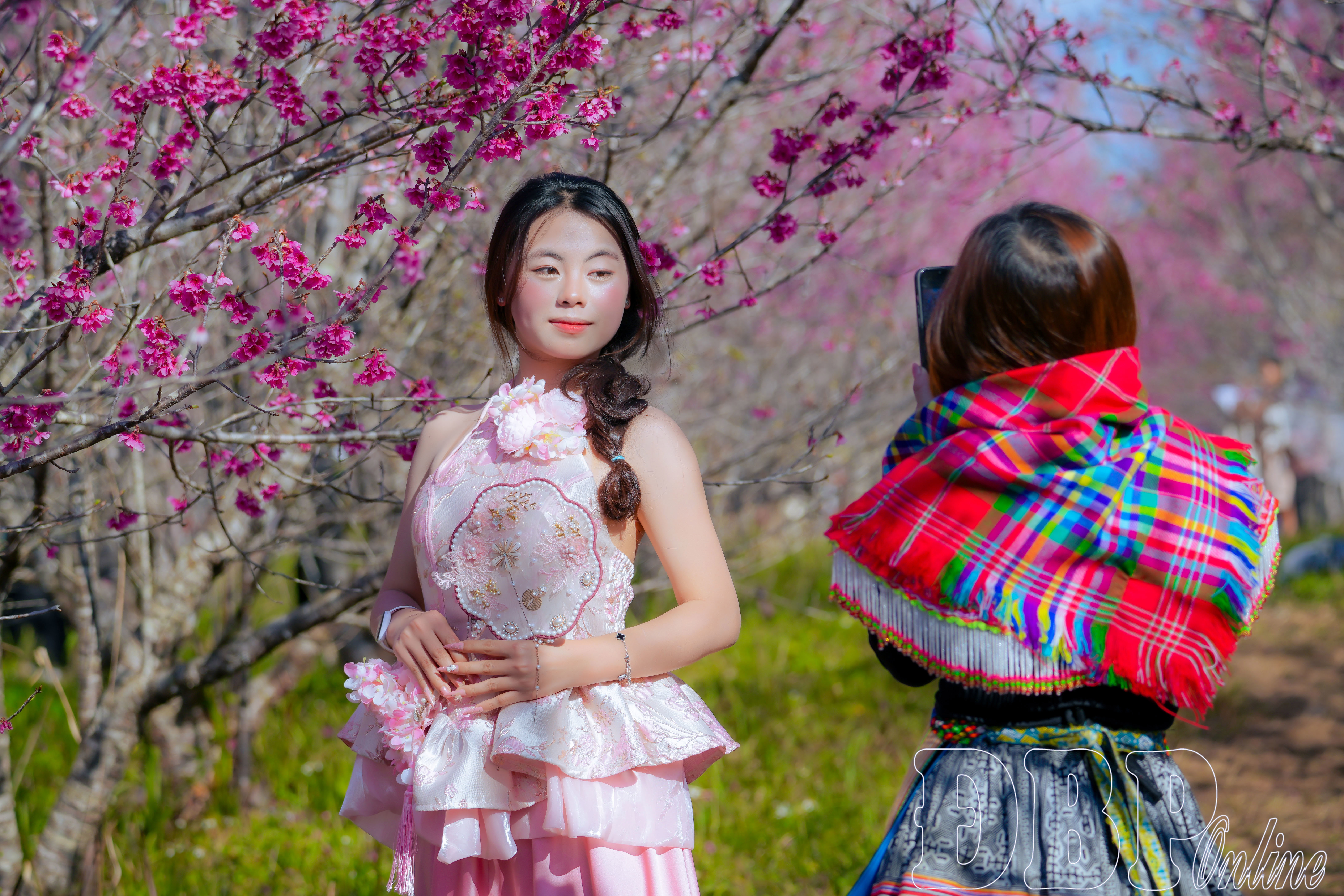 Đảo hoa cũng trở thành điểm hẹn của những người yêu thích chụp ảnh chân dung. Trên đảo, có nhiều gian hàng cho thuê trang phục, mang đến nhiều lựa chọn cho du khách. Những bộ váy áo truyền thống của đồng bào Mông, Thái với hoa văn tinh tế, sắc màu trầm ấm tạo nên chiều sâu văn hóa trong từng khuôn hình. Xen giữa không gian ấy là các trang phục mang hơi thở Nhật Bản, nhẹ nhàng, thanh thoát, rất phù hợp với bối cảnh hoa anh đào. Nhiều thợ ảnh chuyên nghiệp túc trực, sẵn sàng tư vấn góc chụp, hướng sáng, giúp người chụp và người được chụp tìm được sự hài hòa giữa chủ thể và không gian.