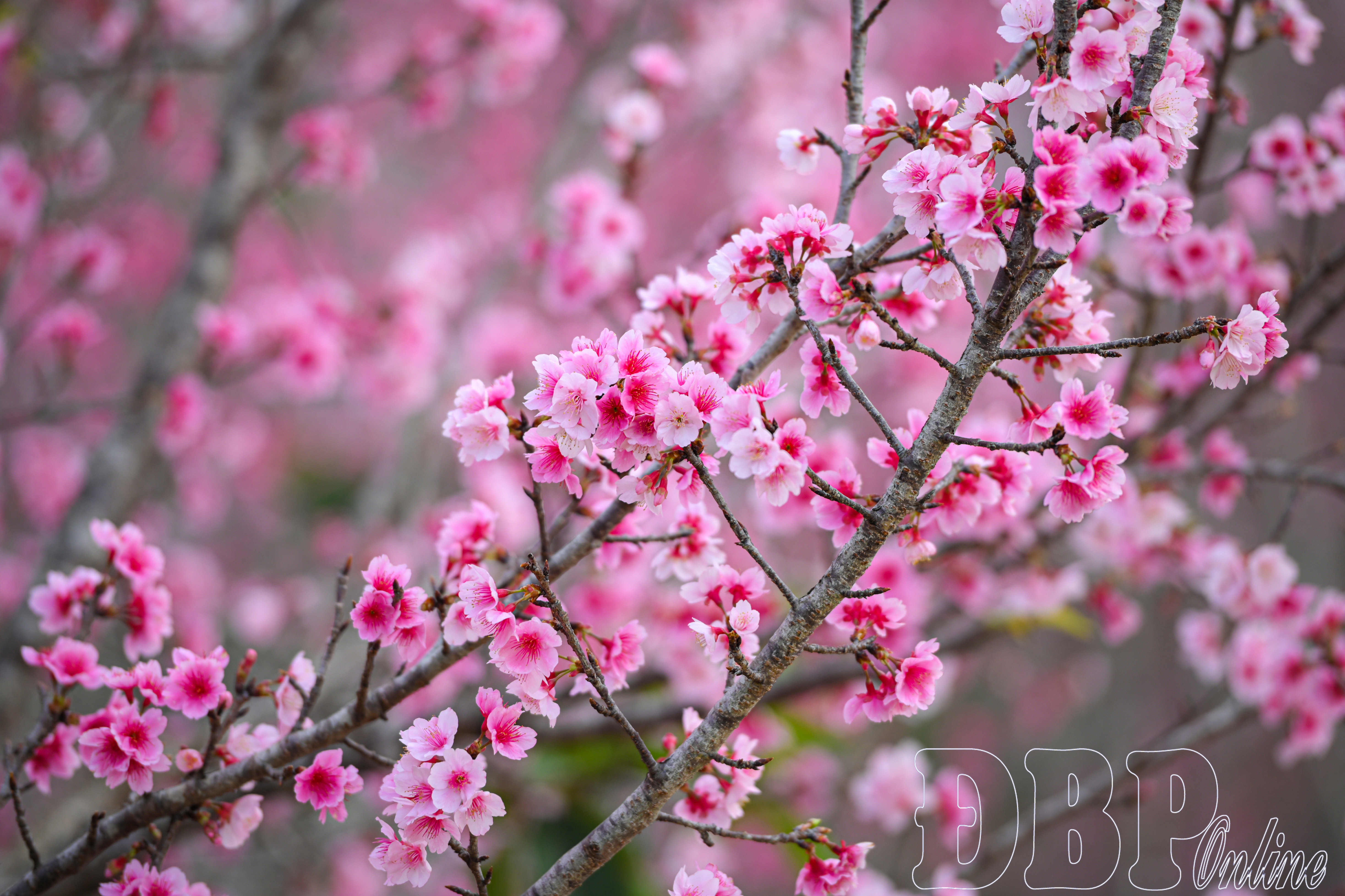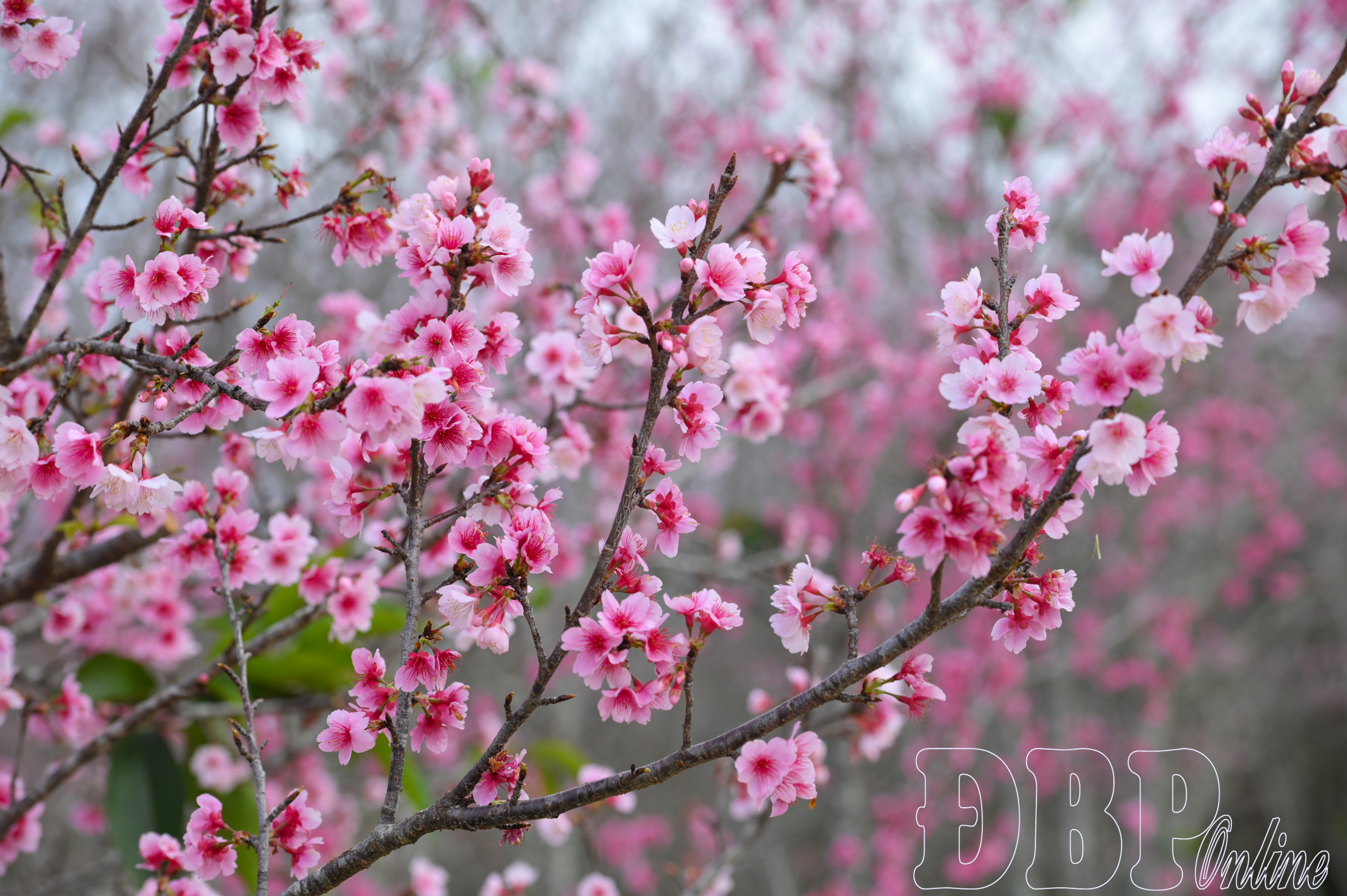 Anh đào bung nở.