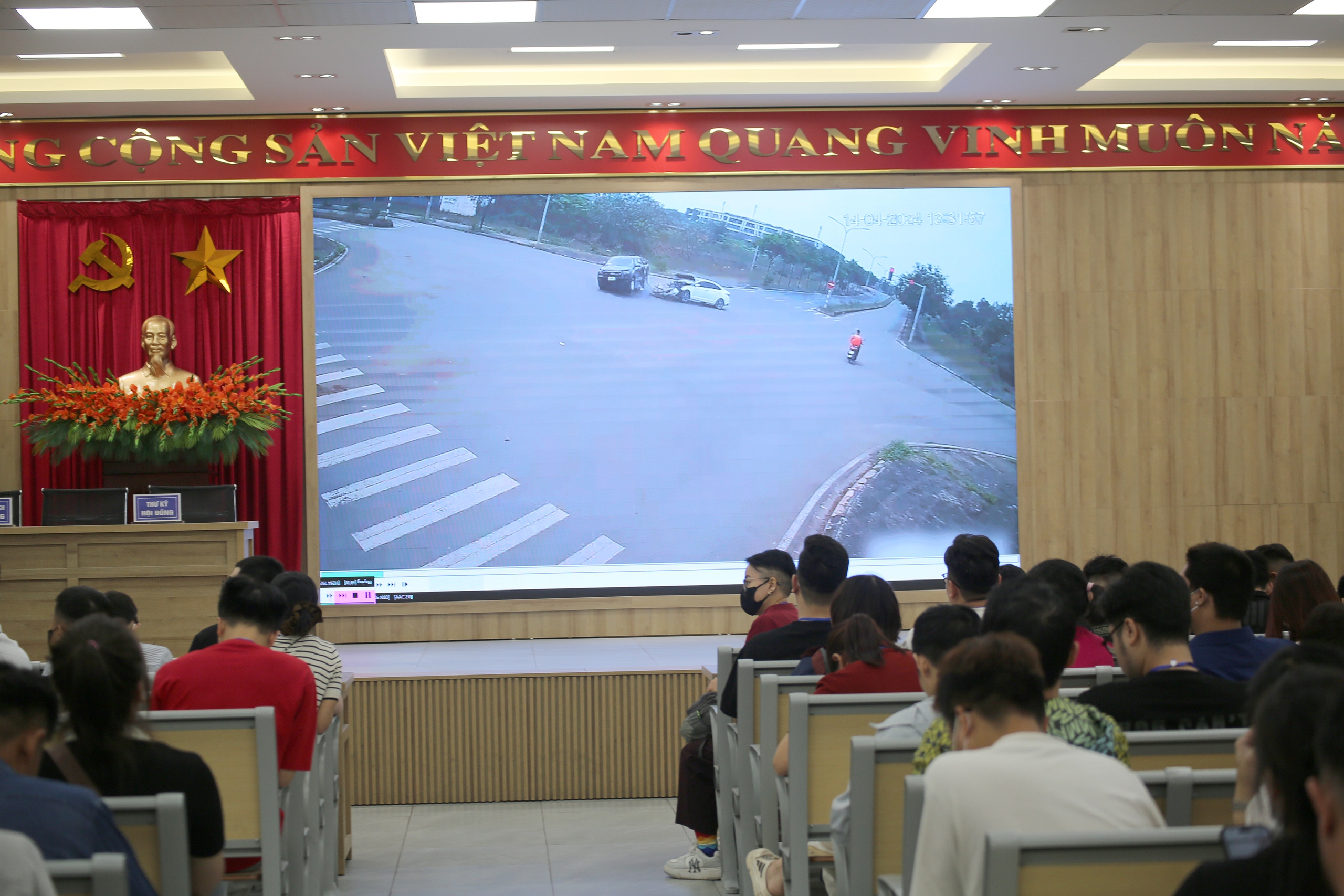 Đây là nội dung mới trong sát hạch cấp bằng lái xe. Do đó, hàng trăm học viên đều chăm chú theo dõi video phản ánh rõ hậu quả nặng nề của các vụ tai nạn giao thông, từ thiệt hại về người đến tài sản.