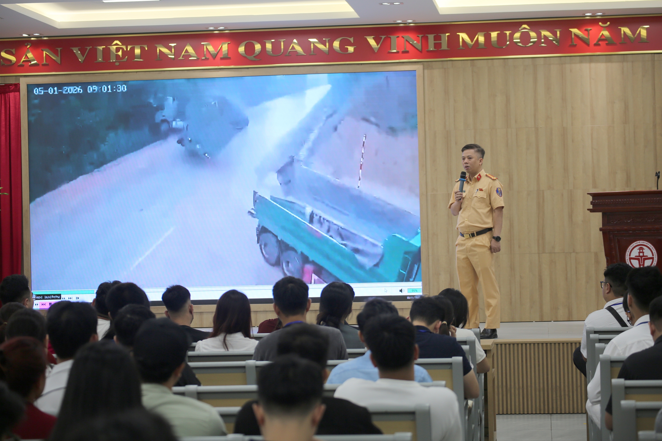 Trung tá Nguyễn Lưu Trung (Đội phó Đội Sát hạch, cấp giấy phép lái xe cơ giới đường bộ) cho biết, đây là kế hoạch của Cục CSGT (Bộ Công an) về nâng cao chất lượng công tác đào tạo, sát hạch lái xe. Để triển khai, đơn vị đã tổ chức cho học viên xem nhiều clip về tai nạn giao thông gây hậu quả nghiêm trọng trước khi tham gia sát hạch.