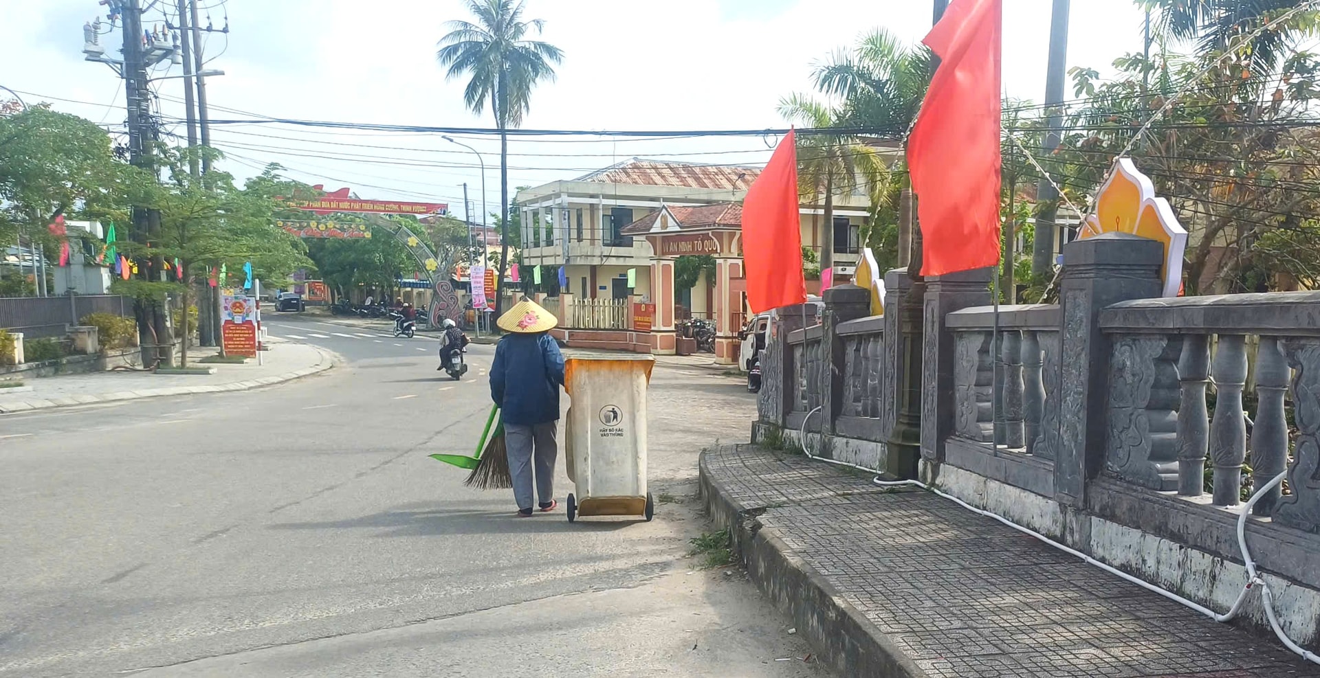 Dạo quanh các tuyến đường chính như Thái Phiên, Tiểu La, Nguyễn Thuật hay len lỏi vào các kiệt, ngõ hẻm tại xã Thăng Bình hôm nay, điều dễ nhận thấy là sự ngăn nắp, thoáng đãng. Thay vì những túi rác vứt tạm bợ bên lề đường như lâu nay, giờ đây trước cổng mỗi gia đình đều xuất hiện những chiếc thùng rác nhựa được đặt ngay ngắn, đậy nắp kín đáo.