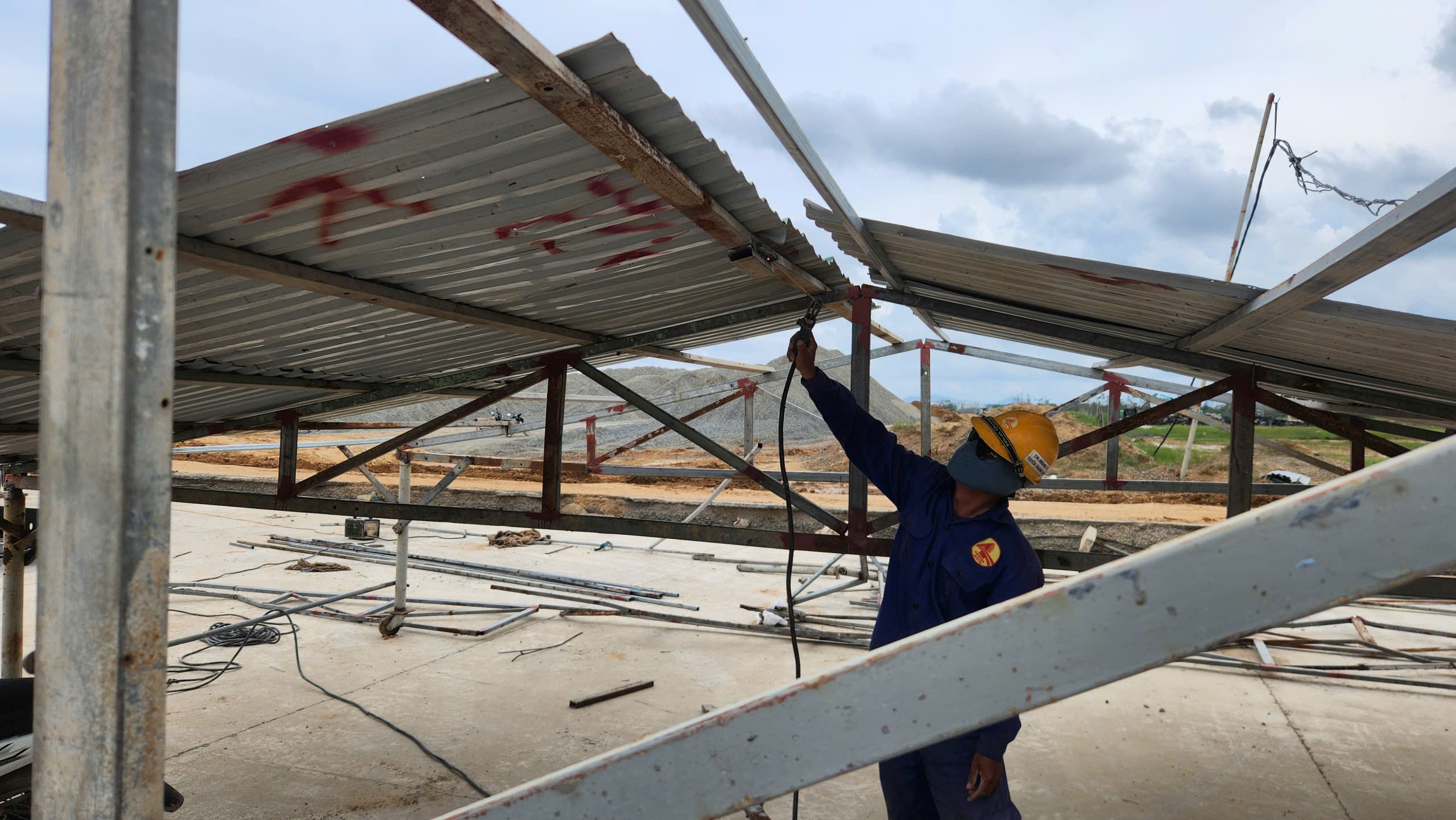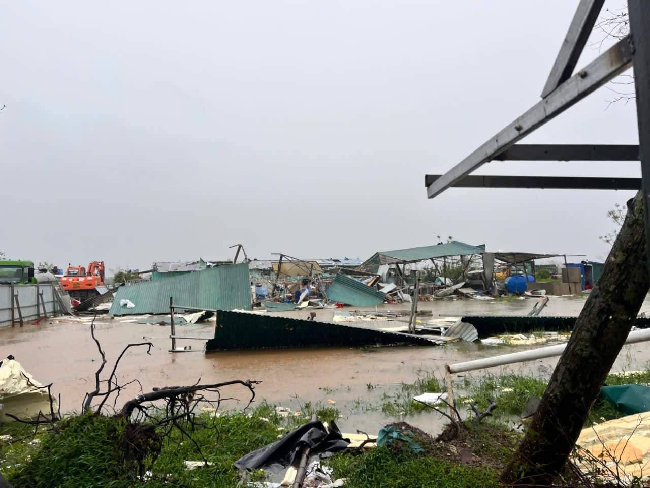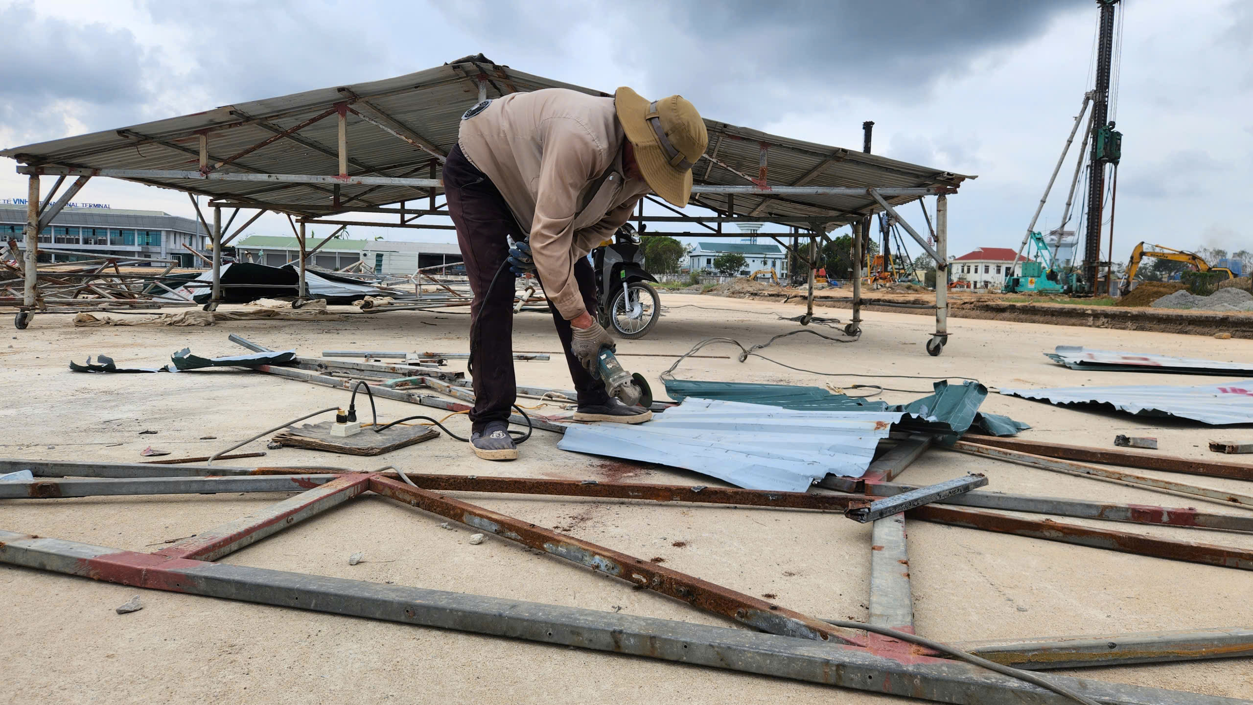 “12 hệ thống mái che di động và một khu nhà ở lắp ghép của 50 công nhân bị bão cuốn sập. Chúng tôi phải thuê nhà container lắp đặt, thay thế sau 4 ngày. Còn hệ thống mái che di động đến hôm nay (sau 10 ngày) công nhân đang tháo dỡ và làm lại. Hai cơn bão làm gián đoạn thời gian thi công trên công trường tới 12 ngày quý giá”, kỹ sư Trần Quang Mạnh, cán bộ phụ trách kỹ thuật, an toàn cho biết.