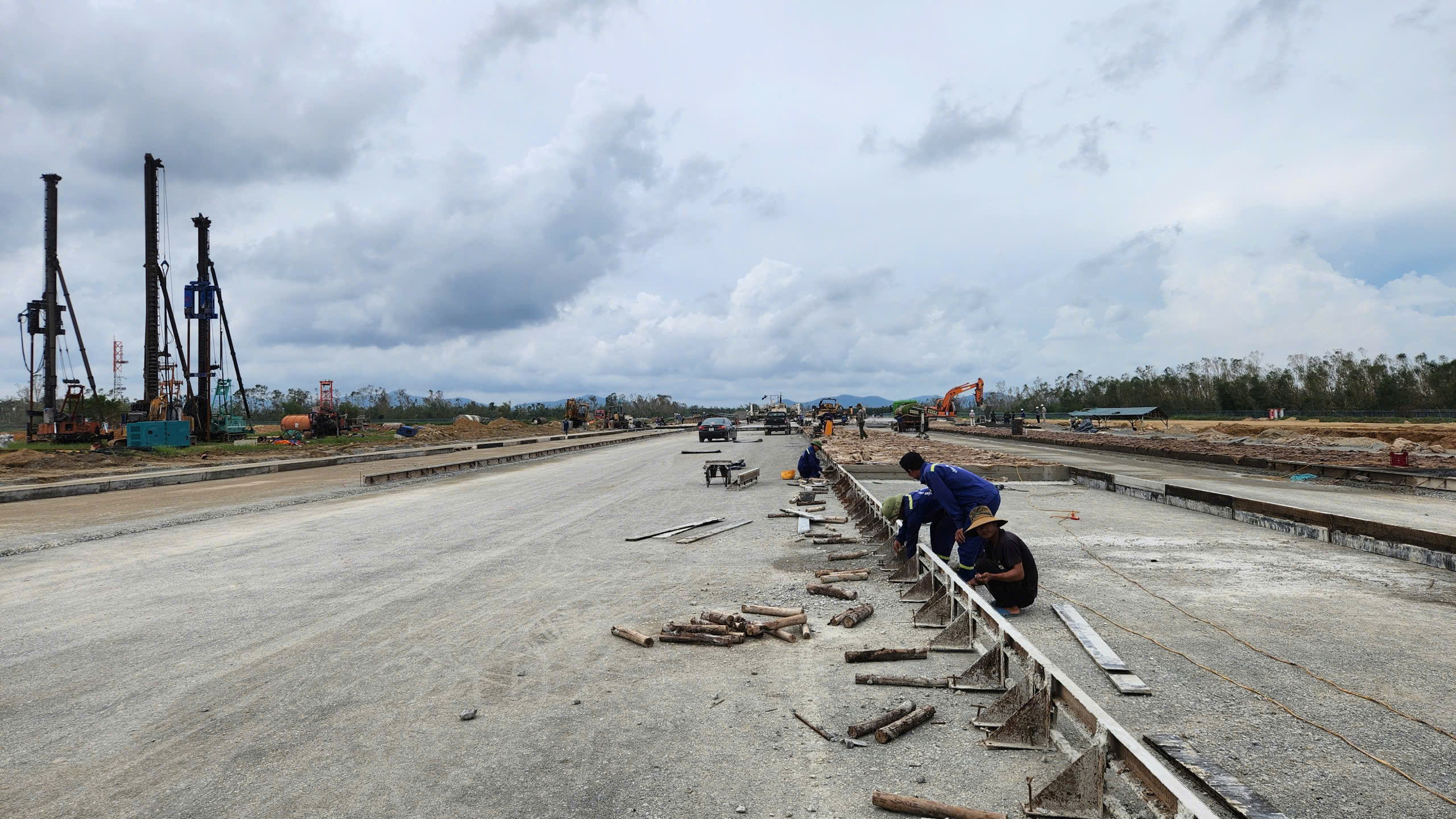 Theo kỹ sư Nguyễn Minh Việt - cán bộ Ban điều hành dự án, đến thời điểm này, 6 nhà thầu trong dự án đều đạt tiến độ đề ra. Trong đó, hạng mục đường cất hạ cánh đã thi công 1,9km bê tông 2 lớp, tương đương 70%. Phần còn lại khoảng 500m đất yếu, các đơn vị đang tập trung gia cố. Dự kiến trong tháng 10 này bắt đầu đổ bê tông...