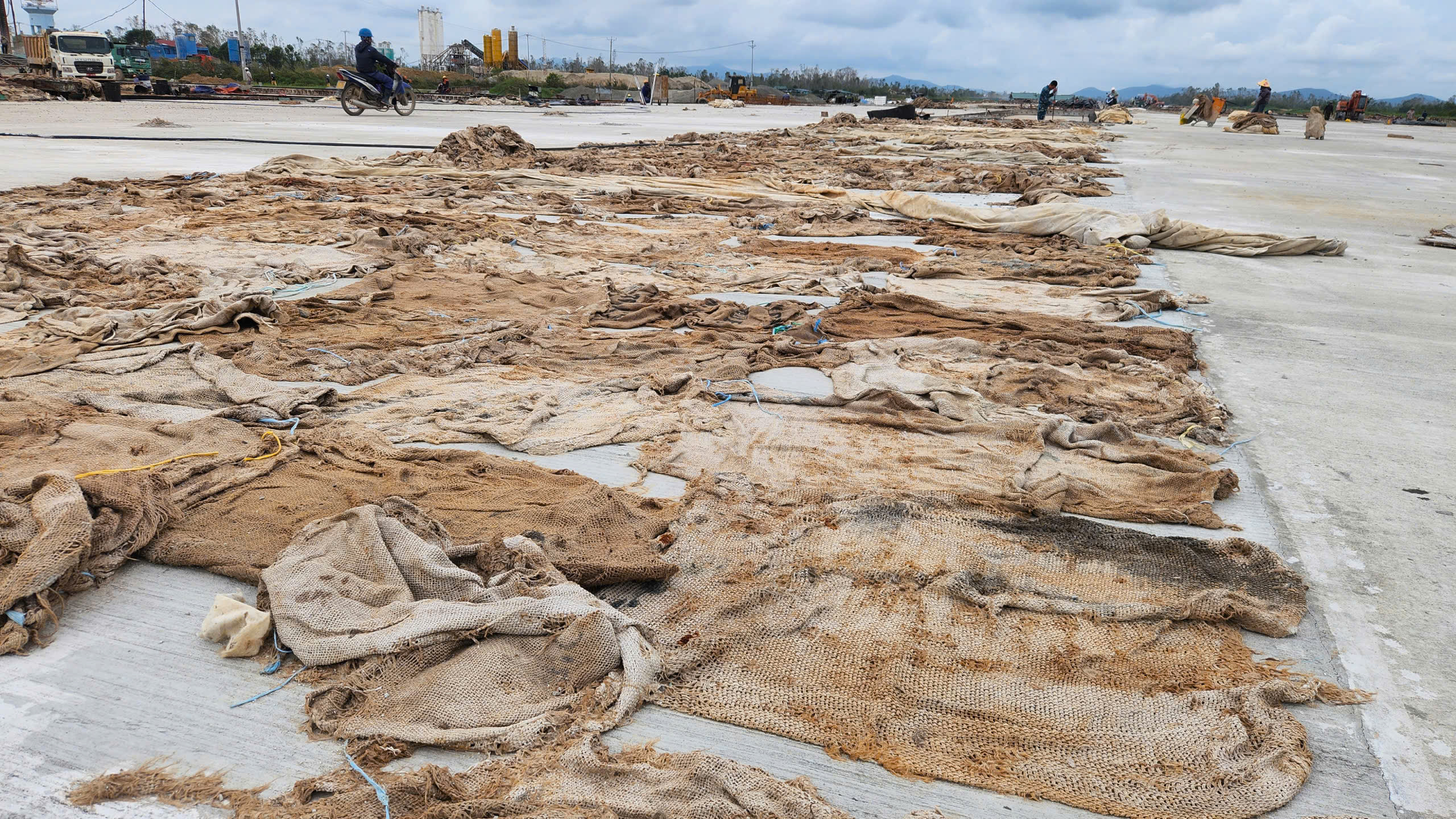 Tư vấn giám sát hiện trường Hoàng Văn Hùng (Phân viện Miền Trung) cho biết: Xét về kỹ thuật, thi công hệ thống đường lăn, sân đỗ không khó, do chủ yếu là đổ bê tông xi măng và bê tông cốt thép. Nhưng mức độ tỉ mỉ và đòi hỏi sự kỹ lưỡng, tính chính xác gần như tuyệt đối. Đơn cử, phần nền sau khi gia cố cọc xi măng đất để chống lún sẽ dải cấp phối đá dăm. Thí nghiệm đạt đủ cường độ K98 mới cho đổ bê tông. Bê tông xi măng ngoài đạt mác M150 và M350 thì đảm bảo độ sụt bằng 0, độ cứng của bê tông; bề mặt sau đổ đúng cao độ, bình đồ trắc, độ nhám mặt... Ngoài ra, phải phun tưới đủ độ ẩm suốt thời gian 14 dưỡng bê tông. Chính vì vậy, tư vấn giám sát luôn phải túc trực ở hiện trường.